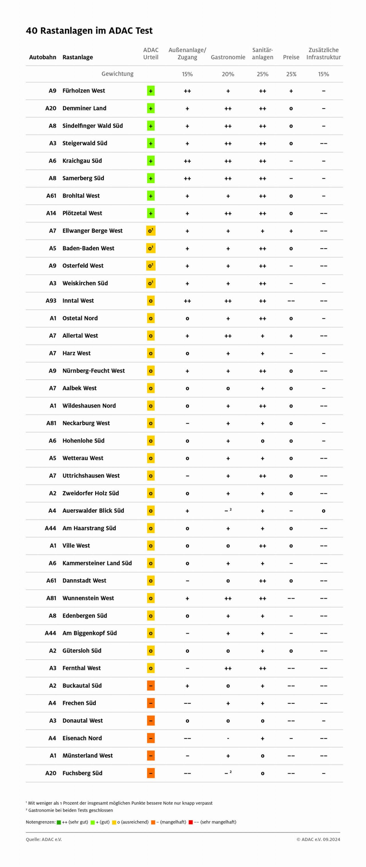 UnternehmenADACMarkt & StatistikReisenAutobahnraststättenRastanlagenADAC-Test 2024