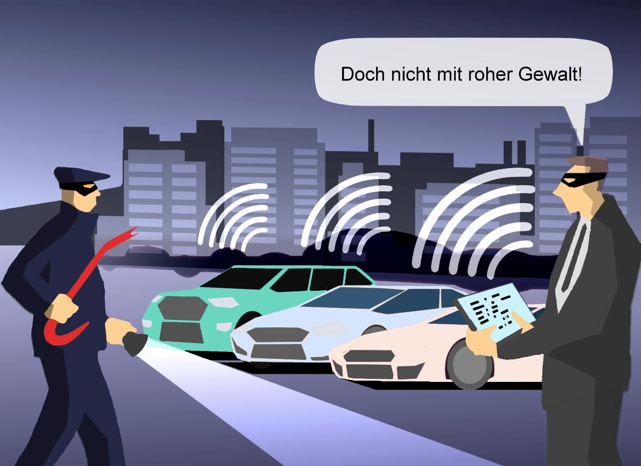 Der unbefugte Zugang erfolgt über einen speziell präparierten Bluetooth-Lautsprecher oder ein altes Handy. Das Gerät wird mit einer zum jeweiligen Fahrzeugtyp passenden Firmware ausgerüstet, die es im Darknet zu kaufen gibt. Die Verbindung von außen zur internen Kommunikation des Autos, dem CAN-Bus, stellen die Autodiebe vielfach her, indem sie Komponenten an der Fahrzeugfront demontieren, wie etwa die Schweinwerfer. Über deren Endpunkte ist der CAN-Bus dann in der Regel leicht zu erreichen. Von da an geht alles meist ganz zügig: Der Befehl zum Öffnen der Türen ist schnell abgesetzt und die Zündung ebenfalls ohne Zeitverlust aktiviert, erläutert das Goslar Institut für verbrauchergerechtes Versichern der HUK-Coburg.