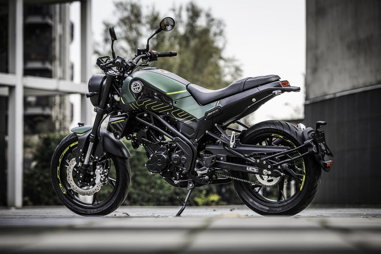 Der Motor liefert 13 PS (elf kW) bei 9500 Umdrehungen in der Minute und zehn Newtonmeter Drehmoment bei 8500 Touren. Benelli verspricht einen niedrigen Normverbrauch von 2,2 Litern. Der Tank fasst 12,5 Liter. Zur Höchstgeschwindigkeit macht der Hersteller keine Angaben, sie soll aber bei über 100 km/h liegen.