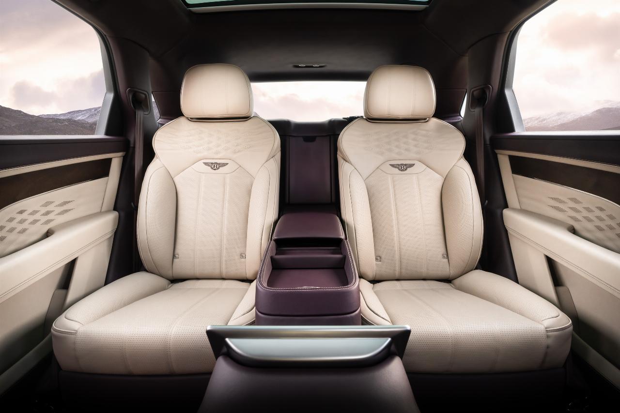 Der Extended Wheelbase ist mit drei Sitzkonfigurationen erhältlich, darunter die völlig neue 4+1-Anordnung mit gelegentlichem Mittelsitz sowie vier- und fünfsitzige Versionen. Auf Wunsch lassen sich die Rückenlehnen hinten um bis zu 40 Grad verstellen. Eine Sensorik sorgt für die weltweit erste automatische Sitzklimatisierung, die hinteren Tür- und Mittelarmlehnen sind beheizbar. Die Rücksitze passen sich außerdem der Haltung der Fahrgäste an.