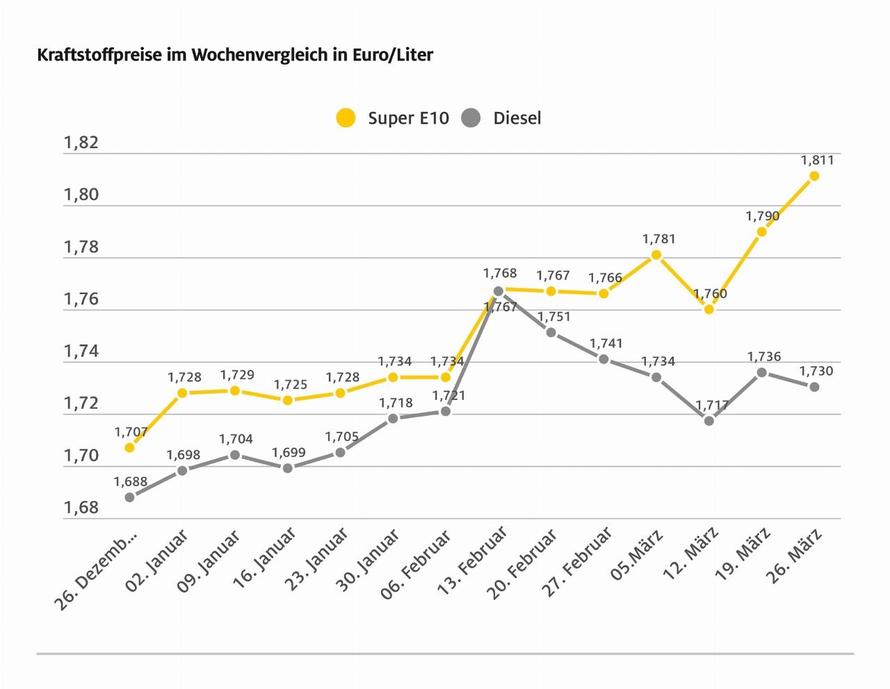 Im selben Zeitraum ist der Preis für Rohöl wieder leicht gesunken. Dies sollte nach Ansicht des ADAC auch einen Rückgang der Preise beider Kraftstoffsorten zur Folge haben, nicht nur bei Diesel. Allerdings notiert der Euro im Wochenvergleich minimal schwächer, was den Effekt geringerer Ölpreise mindert. Für Dieselfahrer ist die Entwicklung erfreulich, zumal die Energiesteuer auf Diesel um rund 20 Cent je Liter niedriger ist als die auf Benzin. Dies spiegelt sich in den aktuellen Preisdifferenz von acht Cent jedoch immer noch nicht wider.