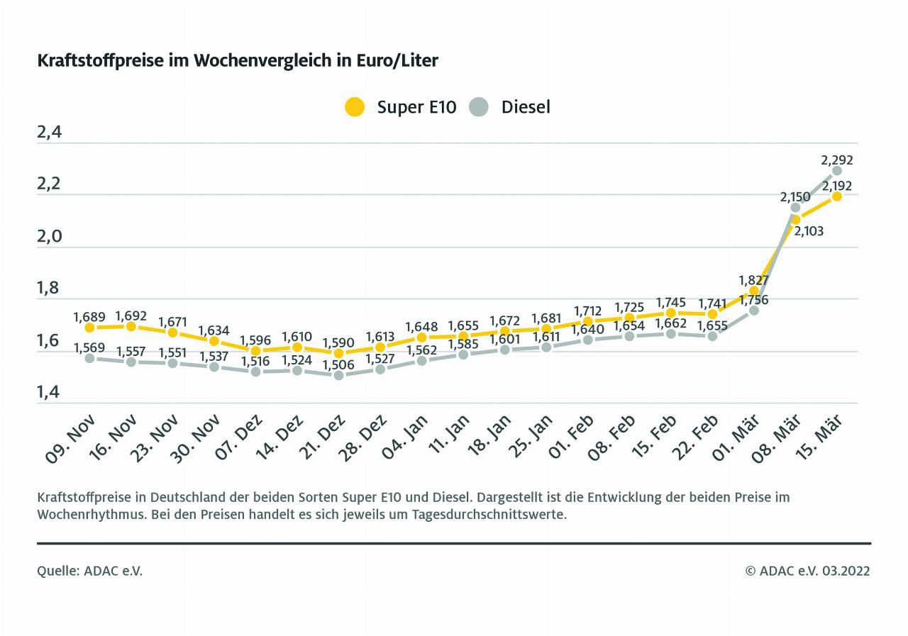 Der Preis für Rohöl der Sorte Brent pendelt derzeit um die 100 US-Dollar und liegt damit mehr als 25 Dollar unter dem Niveau der Vorwoche. Dass die Kraftstoffpreise nicht gefallen, sondern erneut massiv gestiegen sind, liegt nach Einschätzung des ADAC neben dem Krieg in der Ukraine auch daran, dass die Mineralölkonzerne in ihrem Raffineriegeschäft derzeit kräftig mitverdienen.