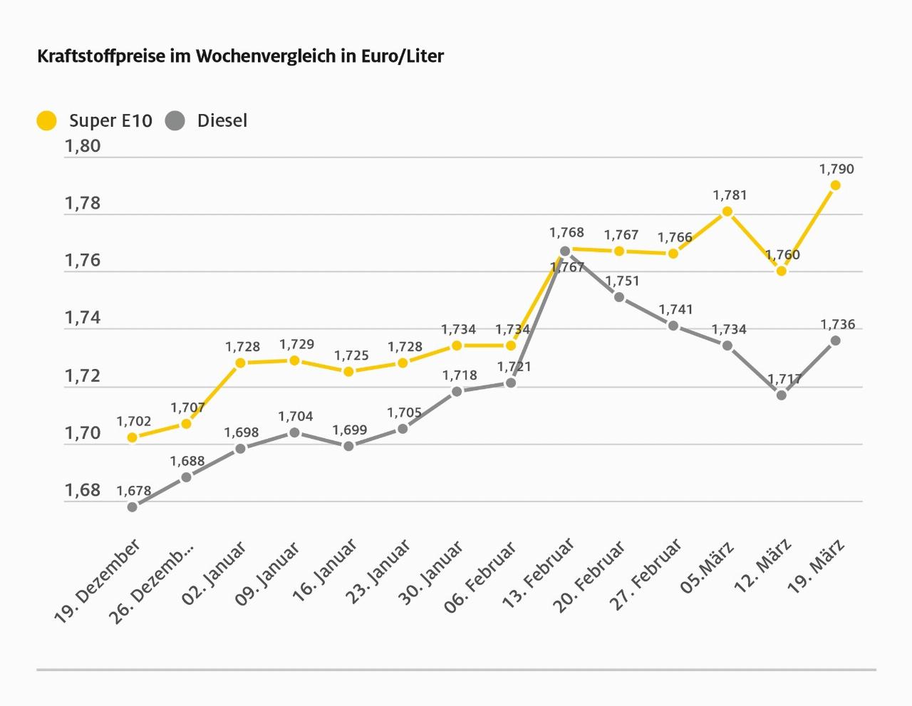 UnternehmenADACMarkt & StatistikBenzinpreiseWochenvergleichKW 16/24