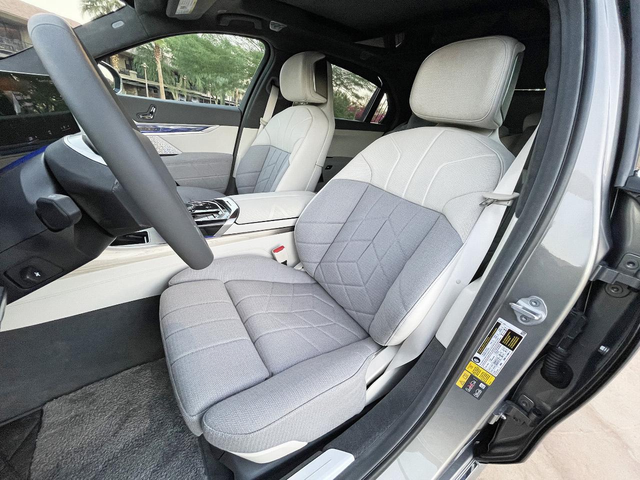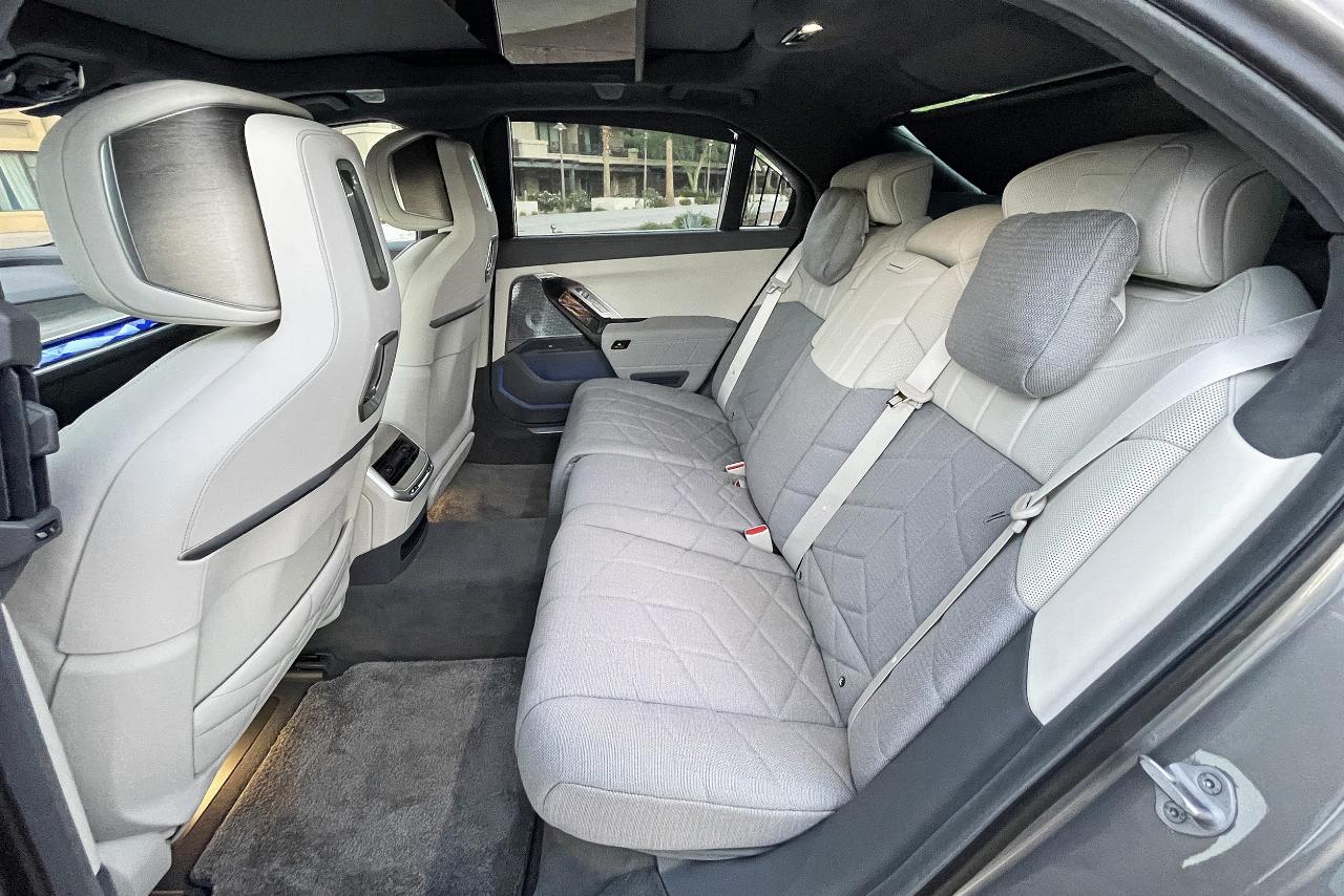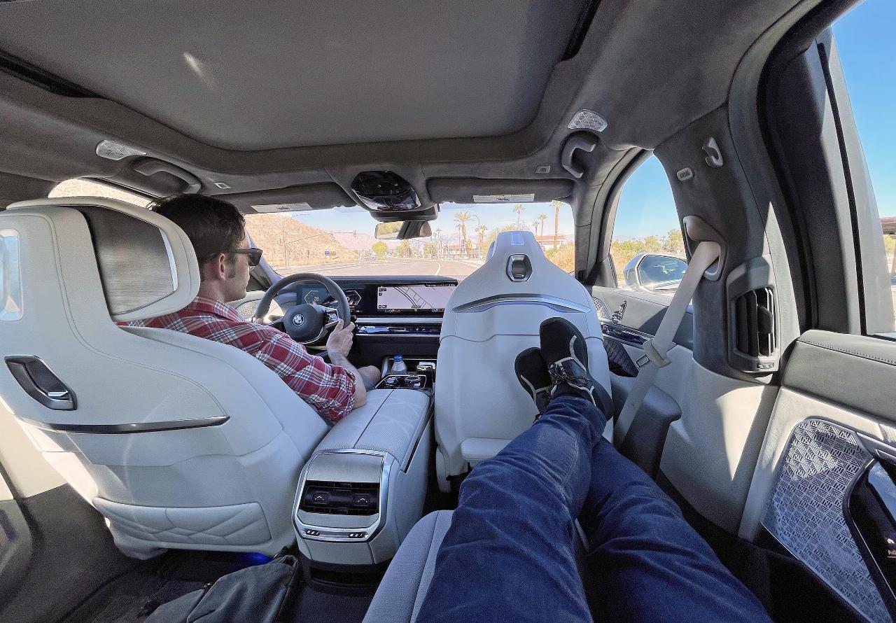 Dank der Batterie im Boden liegt der Schwerpunkt tief (je weniger Passagiere auf der Batterie sitzen, desto tiefer) und in Kombination mit serienmäßiger Luftfederung, mitlenkender Hinterachse und Wankstabilisierung liefert der i7 sowohl luxuriösen Komfort als auch überraschende Sportlichkeit. Die Spreizung der Fahrmodi ist groß, der i7 lenkt präzise dahin, wo man ihn positionieren möchte. Die Beschleunigung ist gut, aber nicht brutal, genau richtig für einen Luxuswagen.