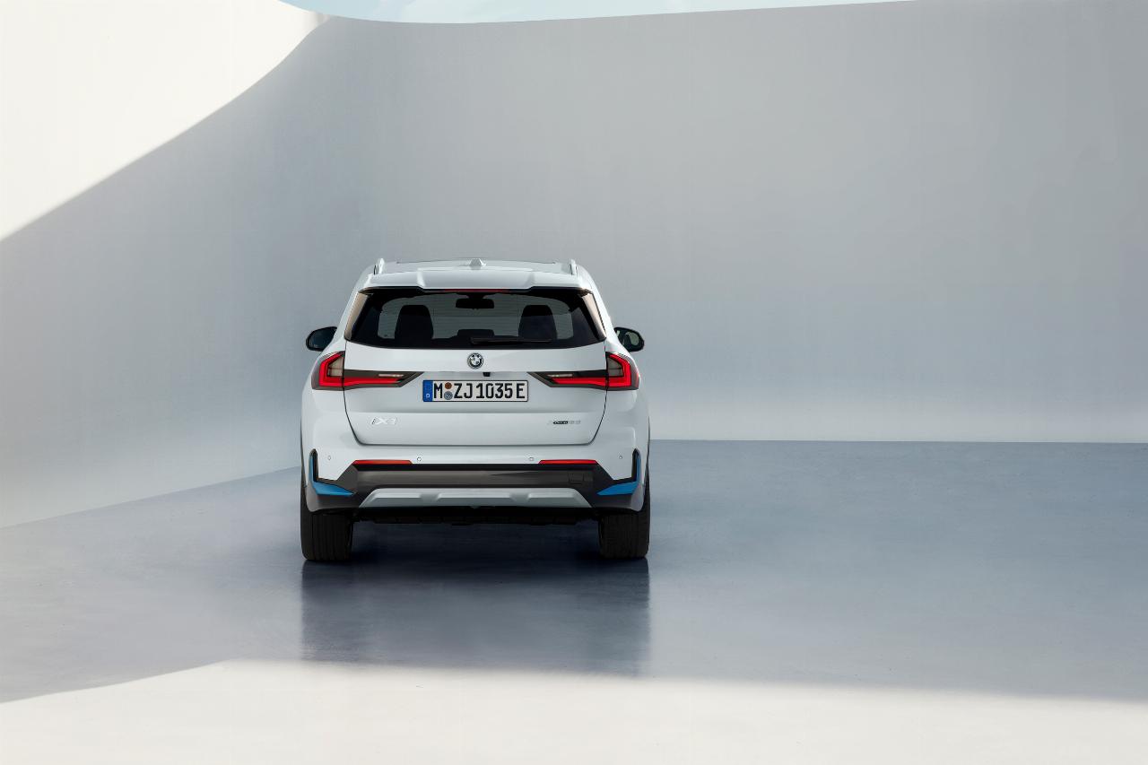 Der BMW iX1 x-Drive 30 ist das erste allradgetriebene Elektrofahrzeug der Marke im Premium-Kompaktsegment. Zwei hochintegrierte Antriebseinheiten an der Vorder- und an der Hinterachse erzeugen gemeinsam eine Leistung, die einschließlich eines temporären Boosts 230 kW/313 PS beträgt. Das Systemdrehmoment beläuft sich auf 494 Newtonmeter (Nm). Den Spurt aus dem Stand auf 100 km/h absolviert der iX1 in 5,7 Sekunden.