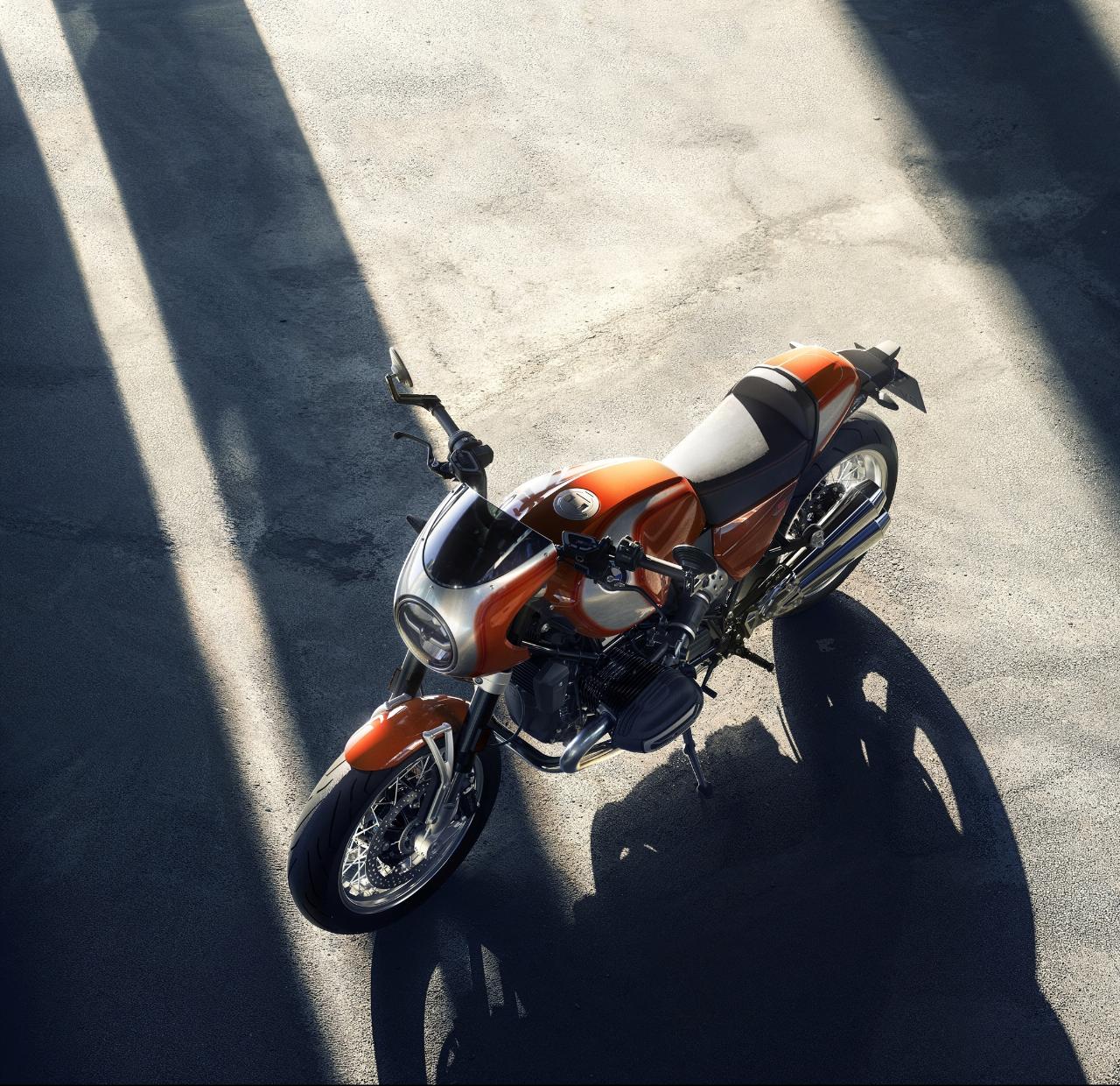 Die R 12 S nimmt viele Gestaltungsmerkmale des Vorbilds auf. Sie hat eine lenkerfeste Cockpit-Verkleidung mit getöntem Windschild, eine Sitzbank mit Kontrastnähten und ist in Lavaorange metallic lackiert. Das das rote „S“ auf den Seitendeckeln, die rote Doppellinierung sowie die gebürsteten und mit Klarlack versiegelten Aluminiumflächen von Tank und Sitzbankhöcker ergänzen den Heritage-Auftritt.