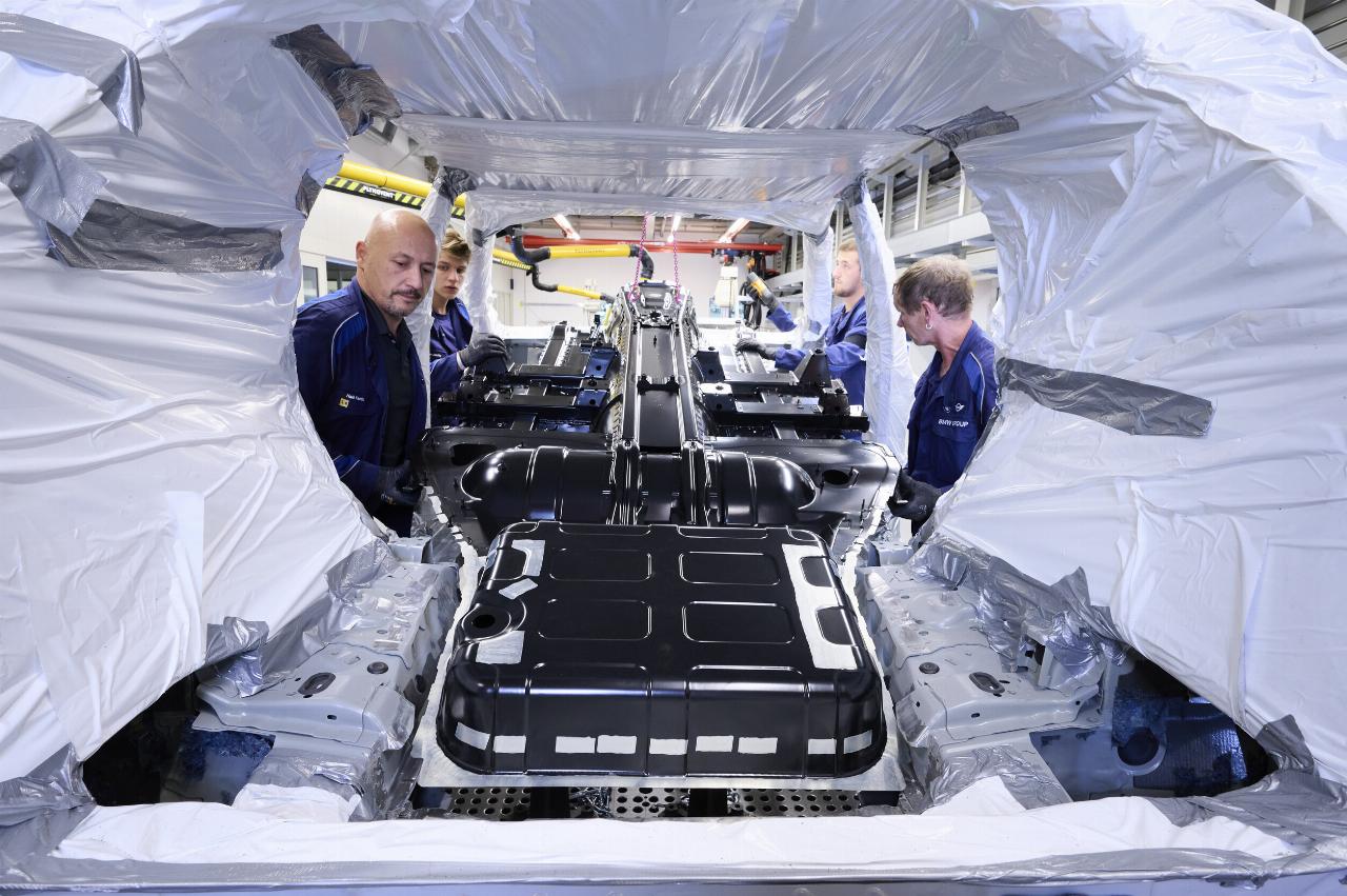 Im Karosseriebau des Pilotwerks erhalten konventionelle X5 eine neue Bodengruppe, die die Aufnahme der beiden Wasserstoff-Tanks im Mitteltunnel und unter der Fondsitzbank ermöglicht. Die E-Maschine, die zusammen mit der Batterie im Bereich der Hinterachse sitzt, wird auch in den batterieelektrisch angetriebenen und Plug-in-Hybrid-Modellen von BMW eingesetzt. Die Brennstoffzellensysteme stecken unter der Fronthaube des BMW iX5 Hydrogen und werden seit August dieses Jahres im BMW-eigenen Wasserstoff-Kompetenzzentrum in Garching nördlich von München gefertigt. (aum)