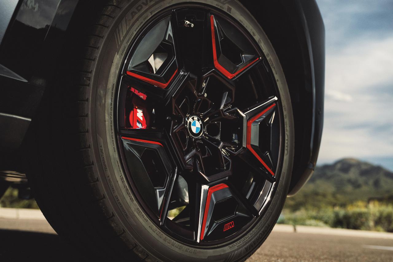 Die Kraft wird über das Allradsystem M x-Drive nach Bedarf, wenn auch hinterradbetont ausgelegt, auf beide Achsen übertragen. Die Beschleunigung aus dem Stand auf 100 km/h hat der XM Label Red in 3,8 Sekunden erledigt, die Höchstgeschwindigkeit wird elektronisch auf 250 km/h limitiert. In Verbindung mit dem optionalen M Driver’s Package wird die Begrenzung auf 290 km/h angehoben. Mit der 25,7 kWh-großen Lithium-Ionen-Batterie sollen laut BMW 75 bis 83 Kilometer Reichweite möglich sein, rein elektrisch eine Spitze von 140 km/h.