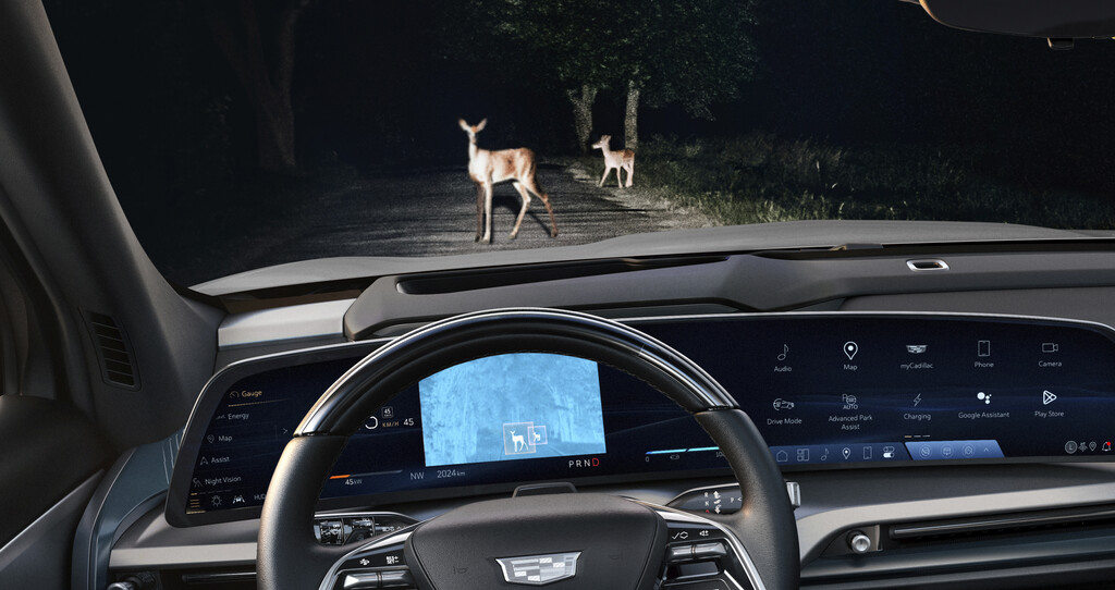 Zur Ausstattung des neuen Cadillac gehören unter anderem ein Nachtsichtsystem, Fünf-Zonen-Klimaanlage, 23 Lautsprecher und ein androidbasiertes Infotainmentsystem, das in ein geschwungenes 33-Zoll-LED-Display integriert ist, das auch die Fahrerinformationen anzeigt. Dazu kommt ein Head-up-Display mit Augmented Reality. Statt mit sieben Sitzen kann der Vistiq wahlweise mit sechs Captain’s Chairs geordert werden.