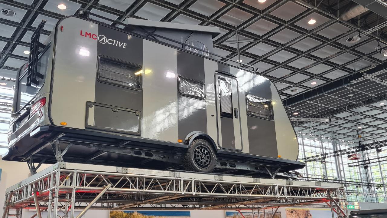 Nicht ganz so aufwändig, aber nicht weniger auffällig ist der Action Caravan von LMC geraten. Der ist zwar ganz konventionell gestaltet, wird aber von zahlreichen Anbauteilen und Accessoires aus der Off-Road-Szene zum Hingucker. Wie es innen aussieht, will der Hersteller nicht verraten und schützt das Interieur vor neugierigen Blicken, indem er den Wohnwagen auf ein gut zwei Meter hohes Podest stellt.