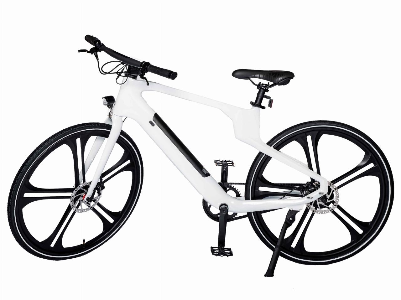 IO Emobility bringt mit dem Blade One ein günstiges Pedelec mit Carbon-Rahmen und Fünf-Speichen-Alufelgen auf den Markt. Das elektrisch unterstützte City-Rad wiegt lediglich 19 Kilogramm und verfügt über einen 250-Watt-Heckantrieb. Die Nabe passt die Übersetzung automatisch an die pedalkraft an. Der entnehmbare und in den Rahmen integrierte Akku erlaubt laut Hersteller Reichweiten von bis zu 110 Kilometern. Es gibt fünf Unterstützungsstufen und ein voll in den Lenker integriertes LCD-Display inklusive Ladeport für ein Smartphone. Front- und Rücklicht sind an Bord, Schutzbleche können herstellerseitig dazugekauft werden.