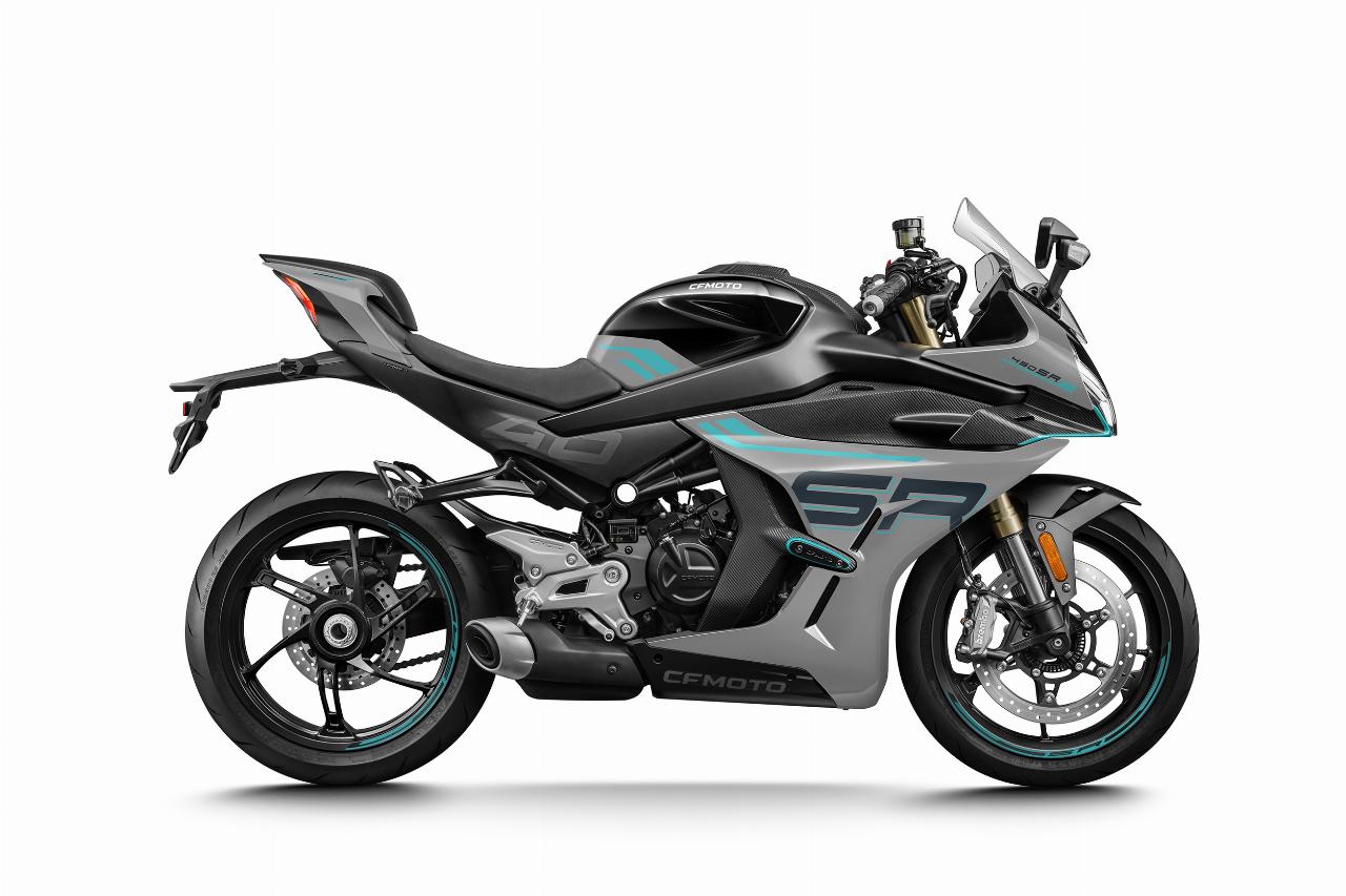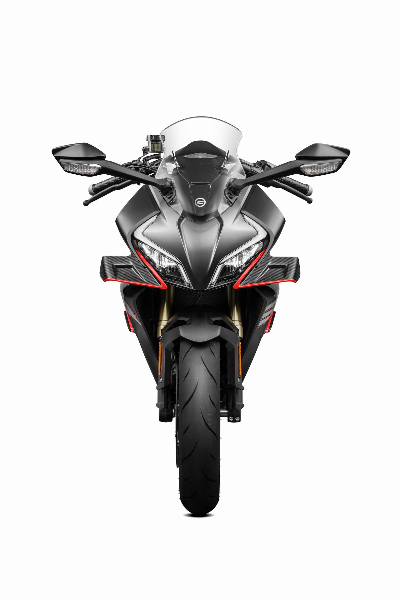 Mit der 450 SR S bringt CF Moto eine neue Supersportlerin in der unteren Mittelklasse an den Start, die sogar mit Winglets vorfährt. Der Parallel-Twin mit 450 Kubikzentimetern Hubraum leistet 46 PS (34 kW), die bei 9250 Umdrehungen in der Minute erzielt werden. Das maximale Drehmoment von 39 Newtonmetern liegt bei 7750 Touren an. Die vollverkleidete RS S verfügt über eine in der Dämpfung verstellbare Upside-down-Gabel, eine Ein-Arm-Schwinge, Traktionskontrolle und ein gewölbtes Fünf-Zoll-TFT-Display mit einfacher Navigationsdarstellung. Auch ein Notbremslicht sowie eine Lademöglichkeit für Smartphones sind mit an Bord.