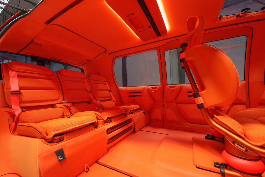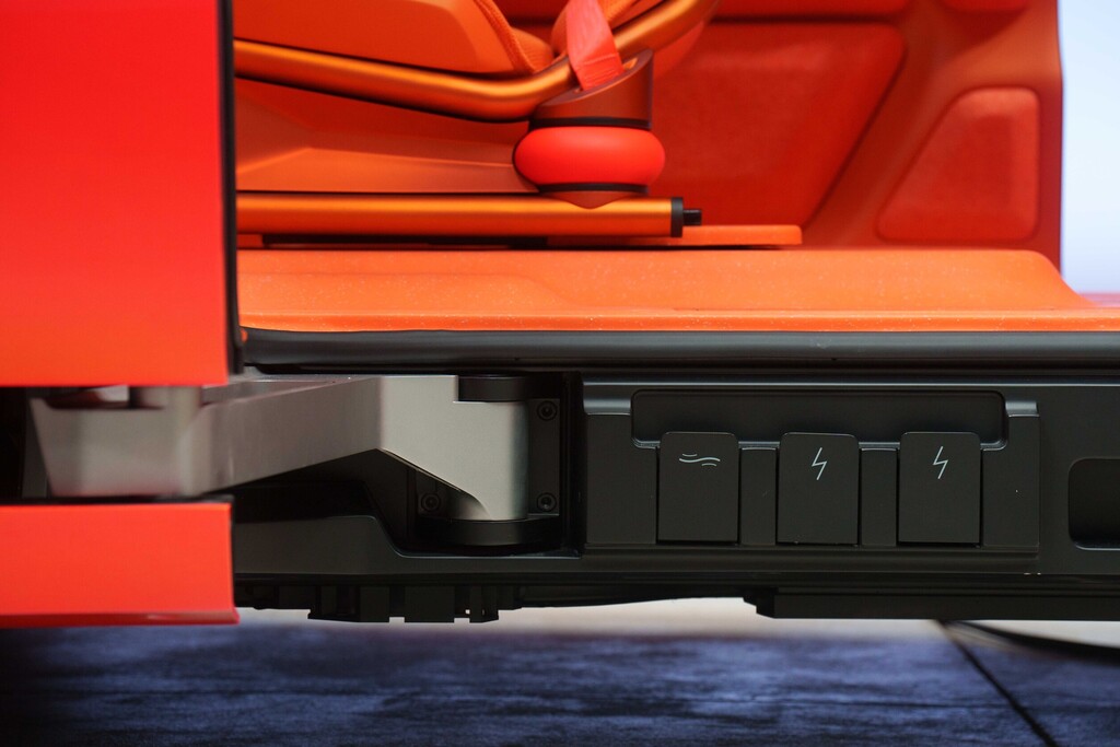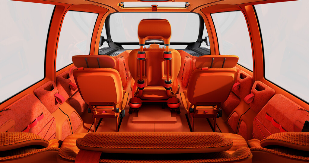 Der Elo mag klein sein, doch, so Chardon, „klein ist das neue groß“, und in der Tat erreicht die ganz in der Citroën-Tradition ausgefallen gestaltete Studie im Innenraum Werte, wie sie ansonsten höchstens im nächsthöheren Segment zu finden sind. Dabei ist natürlich der Radstand von 2,74 Metern hilfreich. Das ist ein Zentimeter mehr als beim deutlich größeren C5 Aircross. Im Fond reicht der Platz für drei Passagiere, die sich hinter dem zentral platzierten Menschen hinter dem Lenkrad einfinden. Unter der Rückbank sind zwei zusätzliche Sitze untergebracht, die sich neben dem Piloten mit wenigen Handgriffen montieren lassen. Mit dem Elo verwirklichten die Kreativen in Paris einen Innenraum, der die Vorteile der Elektromobilität nutzt.
