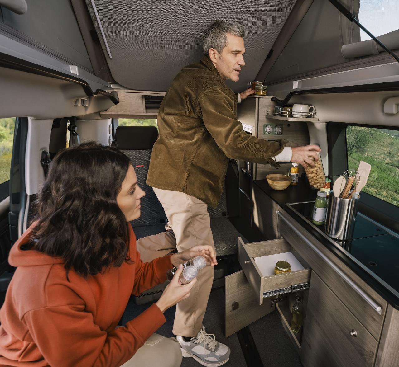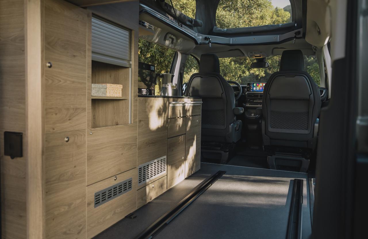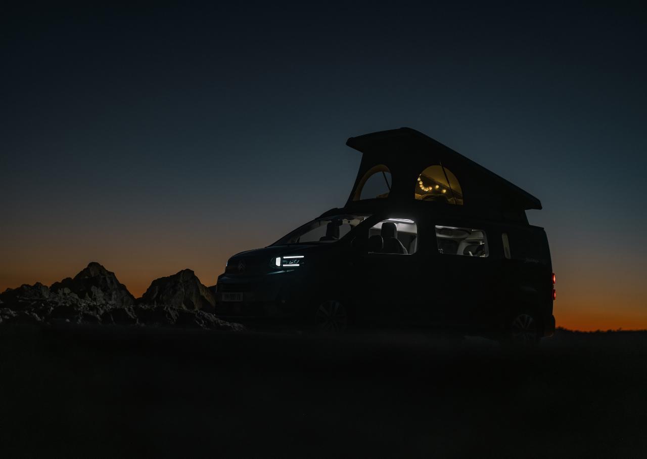 Der Citroën Holidays ist ab Frühjahr bestellbar und bietet Schlafplätze für vier Personen, wobei das aufklappbare Dachzelt in Wagenfarbe erhältlich ist. Die herausnehmbare Sitzbank kann in ein 1,15 Meter breites und 1,90 Meter langes Bett umgebaut werden, oben misst die Liegefläche 1,95 Meter mal 1,20 Meter. Mit an Bord sind eine programmierbare Heizung, eine Spüle und eine Kochmöglichkeit mit zwei Gasbrennern, ein 16-Liter-Kühlschrank und ein versenkbarer Tisch sowie nach hinten schwenkbare Vordersitze. Die Küchenzeile kann mit nach draußen genommen werden. Frisch- und Abwassertank des Holidays fassen jeweils zehn Liter. Der 4,98 Meter lange Campingvan bietet auch eine Dusche am Heck, die mit einem 25-Liter-Tank gekoppelt ist.