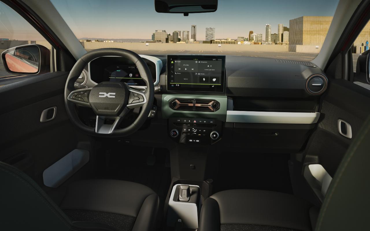 Der Spring wird mit dem bereits bei der kommenden Duster-Generation vorgestellten Youclip-System ausgestattet. Die drei serienmäßigen Montagepunkten können zur Befestigung einer Ablagetasche, eines Smartphone-Halters oder des 3-in-1-Würfels genutzt werden. Das serienmäßige Multimediasystem Media Control wird über Elemente am Lenkrad bedient und seine Inhalte auf der digitalen Instrumententafel angezeigt. Es verfügt über zwei Lautsprecher, Bluetooth und einen USB-Anschluss. Das „Media Nav Live“-System, das beim Ausstattungsniveau „Extreme“ serienmäßig sowie für die mittlere Version „Expression“ optional erhältlich ist, bietet einen zentralen Zehn-Zoll-Touchscreen. Dieser verknüpft Connected Services sowie das Navigationssystem mit Echtzeit-Verkehrsbedingungen und stets aktuellem Kartenmaterial für Europa. Darüber hinaus gibt es Apple Carplay und Android Auto.