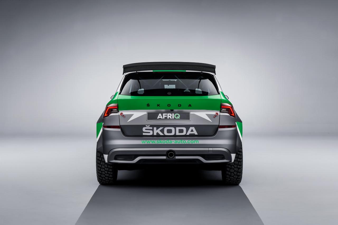 Beim Design des Afriq sind die Anleihen beim Fabia Rally2 Evo nicht übersehen. Die „Kriegsbemalung“ des umgestalteten Kamiq zitiert den Rallye-Boliden, und auch im Innenraum gelang es, die Motorsportgene der Marke zu zitieren. Die hinteren Türen des zivilen SUV wurden verschweißt und mit dem speziell entwickelten Überrollkäfig verbunden. Der Heckspoiler wurde direkt vom erfolgreichen Rallye-Fabia übernommen. Eine besondere Aufgabe war die Anpassung des Allradantriebs. Der stammt samt 2,0-Liter-TSI-Vierzylinder mit 190 PS aus dem Octavia 4x4 und wurde wie die Abgasanlage für die neuen Aufgaben entsprechend aufbereitet. Gleichzeitig wurden das Getriebe und der Auspuff modifiziert. Der Innenraum wurde auf die Anforderungen des Rallyebetriebs reduziert, und am Ende stand ein 1350 Kilogramm leichter Bolide auf seinen 15-Zollrädern.