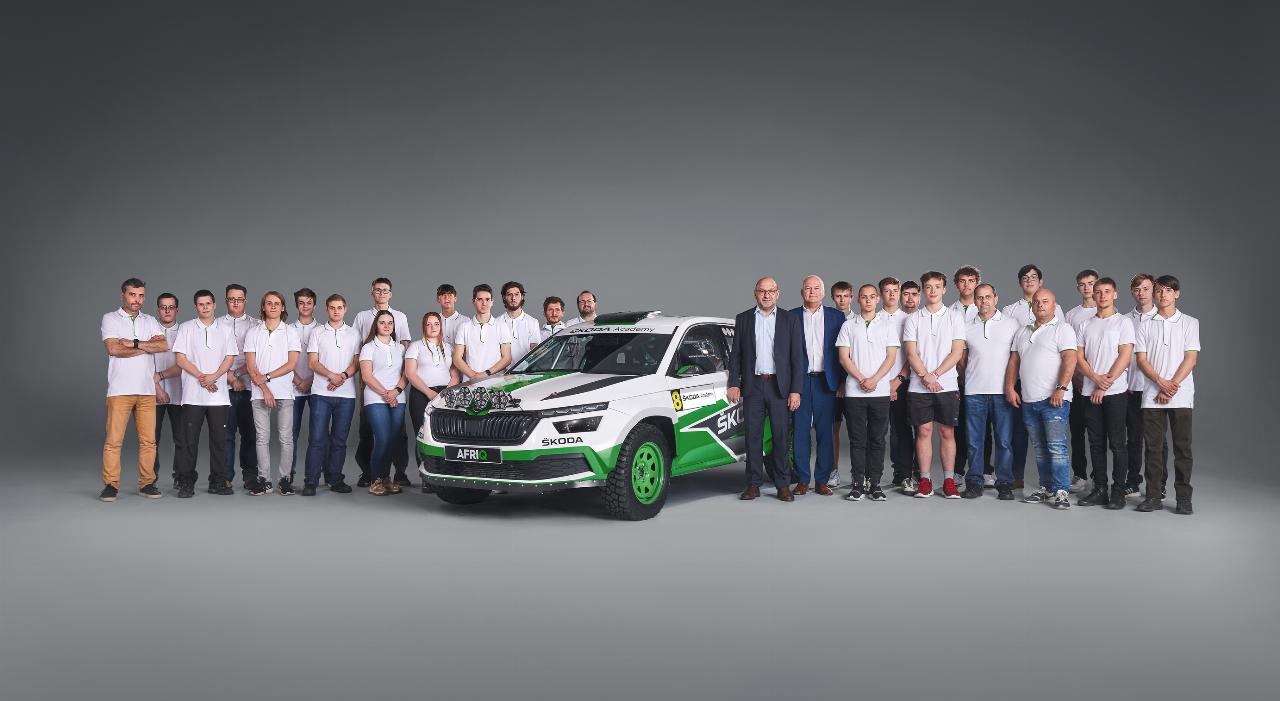 Der Afriq ist das ahte Modell, das die Auszubildenden in Mlada Boleslav entwickelt und auf die Räder gestellt haben. 22 Männer und drei Frauen haben in den vergangenen zwei Jahren ihre Freizeit mit der Entwicklung des Fahrzeugs verbracht. Eigentlich sollte der Afriq bereits im vergangenen Jahr vorgestellt werden, doch dann kam Covid, und deshalb rollt der Rallye-Bolide erst jetzt in die Öffentlichkeit.