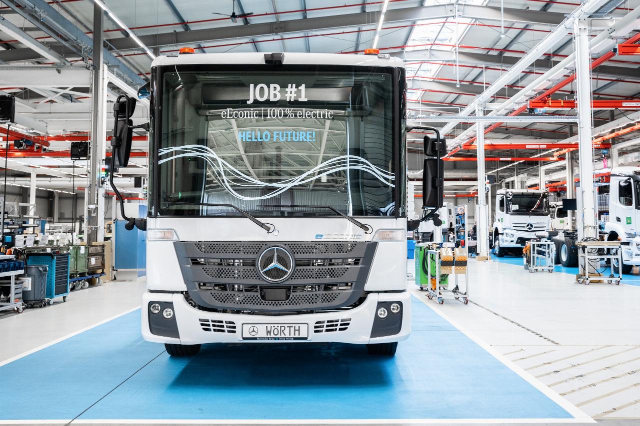 Der eEconic wird in der bestehenden Montagelinie von Mercedes-Benz Special Trucks gefertigt, parallel zu den Lkw, die einen Verbrenner-Antrieb erhalten. Nachdem das Fahrzeug weitestgehend aufgebaut ist, kommt es in das Future Truck Center zur Elektrifizierung, wo er – genauso wie der eActros – mit den elektrischen Antriebskomponenten ausgestattet wird.