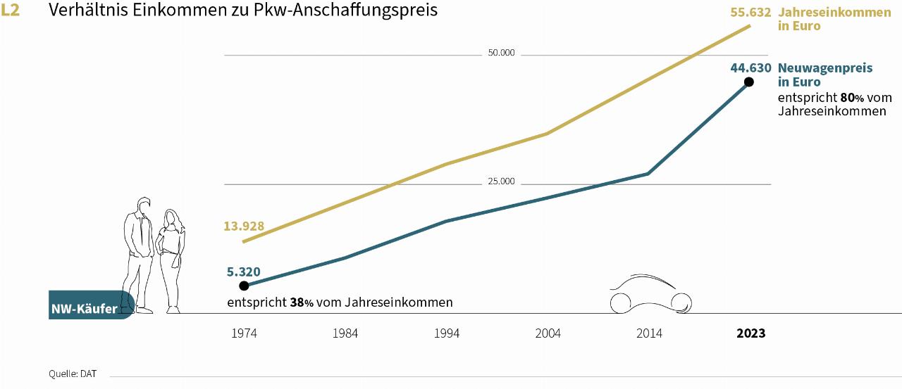 Trotz der positiven Grundeinstellung zum Auto fühlen sich die Kunden zutiefst verunsichert. Weil Preise, Unterhaltskosten und Zinsen steigen, gab knapp die Hälfte (46 Prozent) aller Pkw-Halter an, Angst zu haben, sich bald kein Auto mehr leisten zu können. Dabei ist das eigene Auto für 81 Prozent im Alltag unverzichtbar, also kein Luxus. Die Mehrheit der Befragten kauften sich auch nur deshalb einen Wagen, weil es nicht anders ging. Bei Gebrauchtwagen-Erstkäufern gaben sogar 90 Prozent an, der Autokauf sei unausweichlich gewesen.