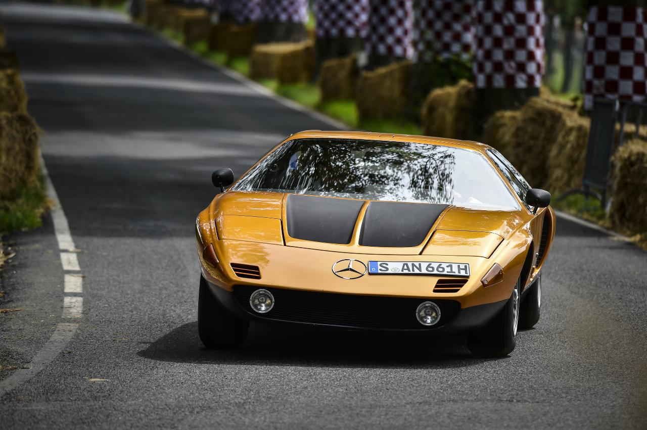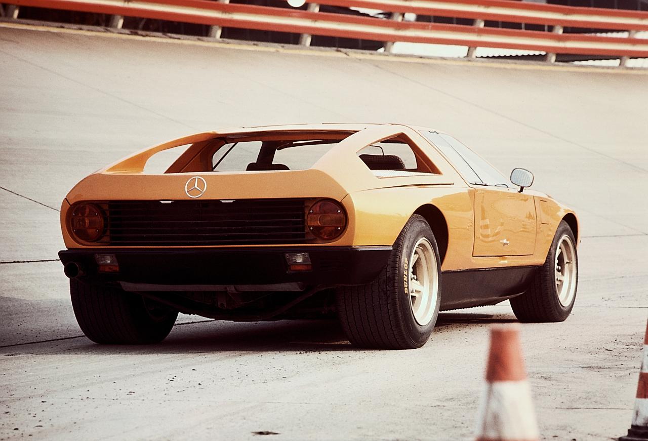 1970 gab es ein Paukenschlag: Mercedes-Benz präsentierte mit dem C111 einen Sportwagen, der stilistisch und technisch Maßstäbe setzte. Die hochmoderne Form mit Klappscheinwerfern und Flügeltüren war eine zeitgenössische Neuinterpretation des 300 SL. Der Designsprung – erst sieben Jahre zuvor war der 300 SL ausgelaufen – unterstreicht noch heute die unglaubliche Kreativität und Innovationskraft der Ingenieure und Designer, bevor Politik und Regulierer ab den 70er-Jahren die Industrie in den eisernen Griff zu nehmen begannen.