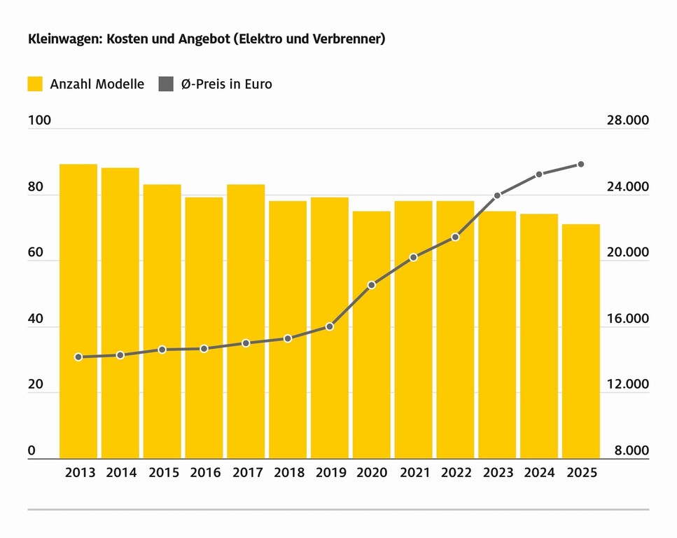 Der ADAC betont, dass die Verbraucher ein breites und vor allem bezahlbares Mobilitätsangebot benötigen. Kleinwagen sind dabei aus Sicht des Clubs ein wichtiger Bestandteil. Die aktuelle Entwicklung sei bedenklich, denn viele Verbraucher könnten sich die aktuellen Preise kaum mehr leisten. Die Hersteller argumentieren oft, dass gestiegene Sicherheitsforderungen und die Inflation der vergangenen Jahre für die Preissteigerungen verantwortlich seien. Der Sprung, der in den vergangenen Jahren zu beobachten war, ist nach Meinung des ADAC aber unverhältnismäßig groß.