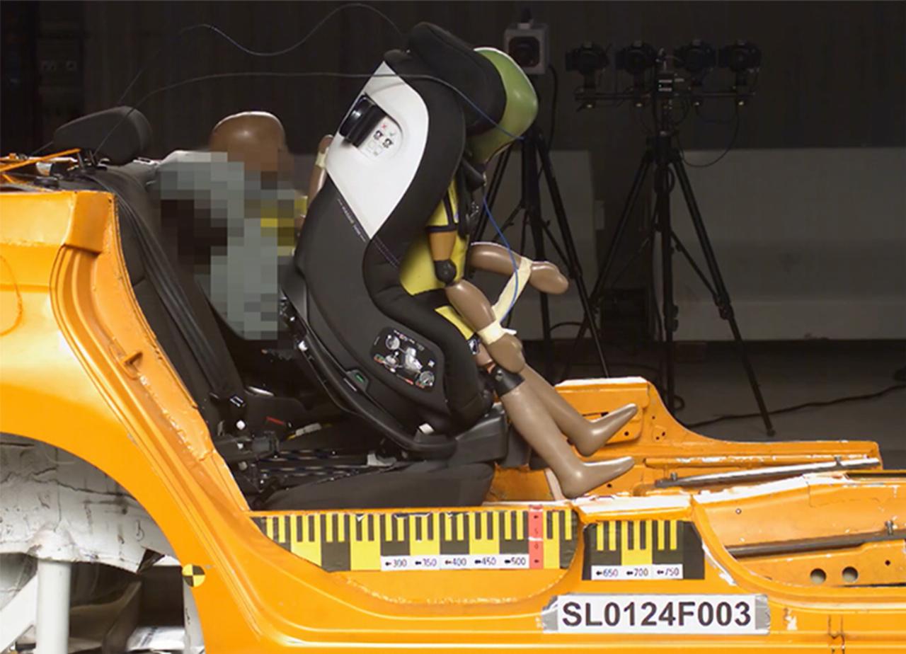 Die im Rahmen des Verbraucherschutztests erfolgten Frontalaufprallversuche sind von der Unfallschwere an den Fahrzeugcrashtest von Euro NCAP (versetzter Frontalaufprall mit 64 km/h) angelehnt. Auf die Testprodukte wirken dabei deutlich höhere Kräfte als bei den gemäß UN Reg. 129 gesetzlich vorgeschriebenen Zulassungsversuchen für Kindersitze, die auch der betroffene Peg Perego erfüllt.