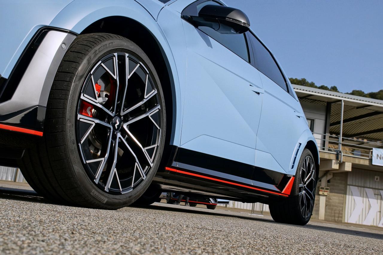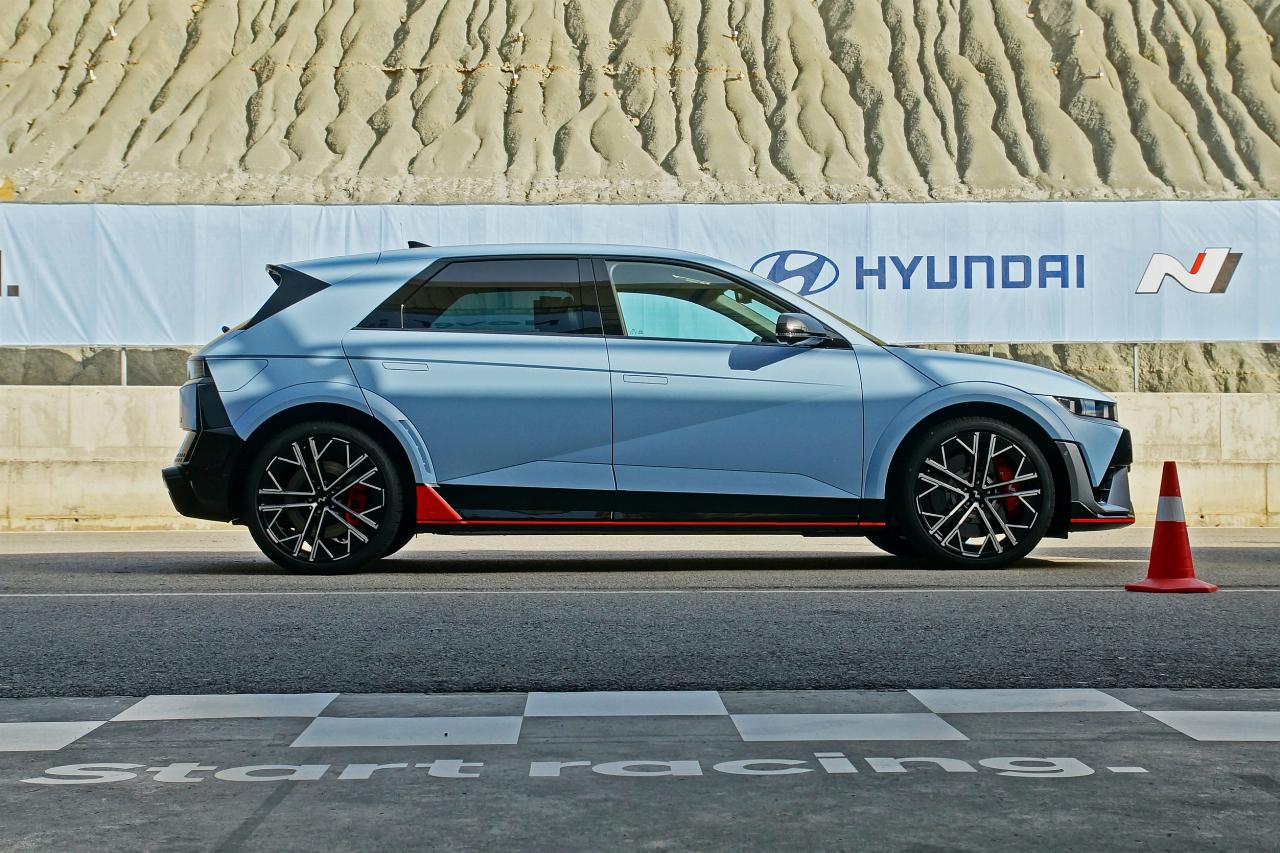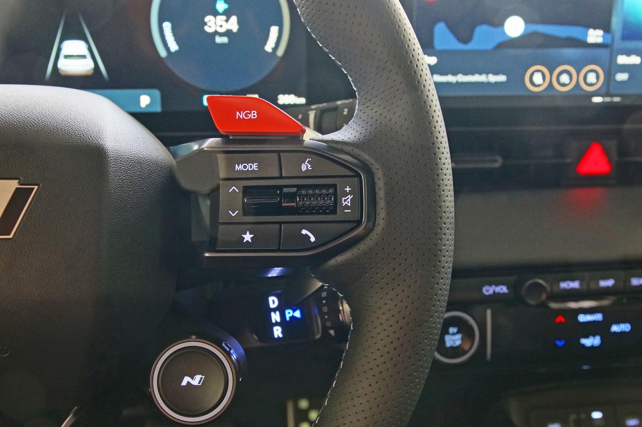 Bei „8000 Umdrehungen in der Minute“ beginnt der rote Drehzahlbereich – „eine Bauchentscheidung“, so Hyundai. Die Schaltsimulation orientiert sich an einem Acht-Gang-Doppelkupplungsgetriebe, und der Klang beim Schalten und Gaswegnehmen ist ein echter Leckerbissen: Man hat 20 Klangmuster für Auspufffehlzündungen entwickelt und Getriebespezialisten aus der Verbrennerwelt mit ins Boot genommen.