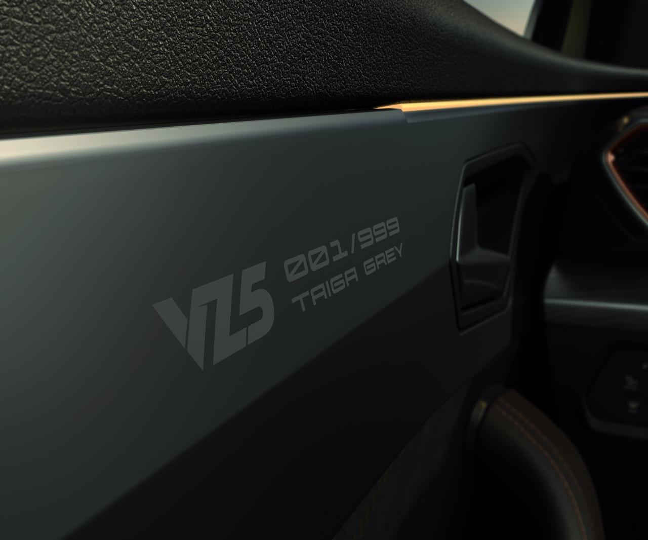 Die Fahrzeugnummer eines jeden Cupra Formentor VZ5 Taiga Grey wird mit einem Schatteneffekt in die Türverkleidung gelasert. Das Sondermodell ist Teil der auf 7000 Einheiten begrenzten Stückzahl des Fünfzylinder-Modells und kostet 70.605 Euro.