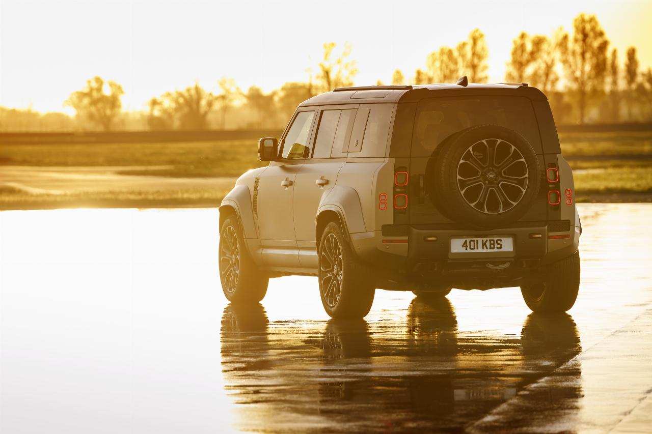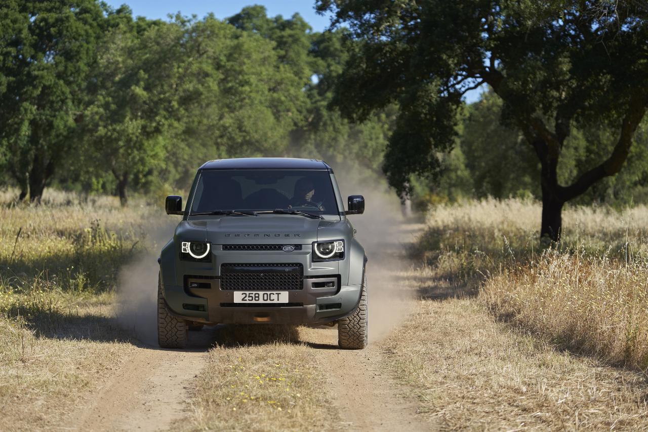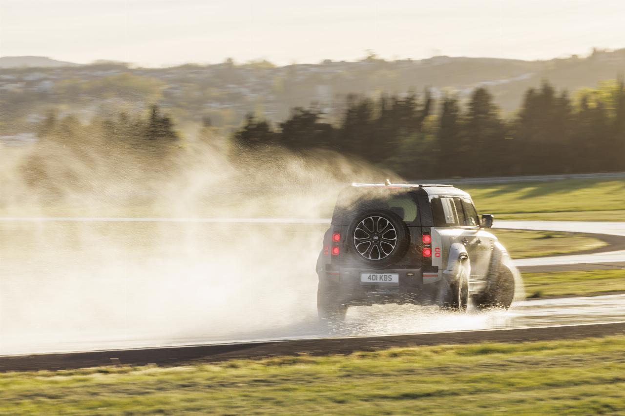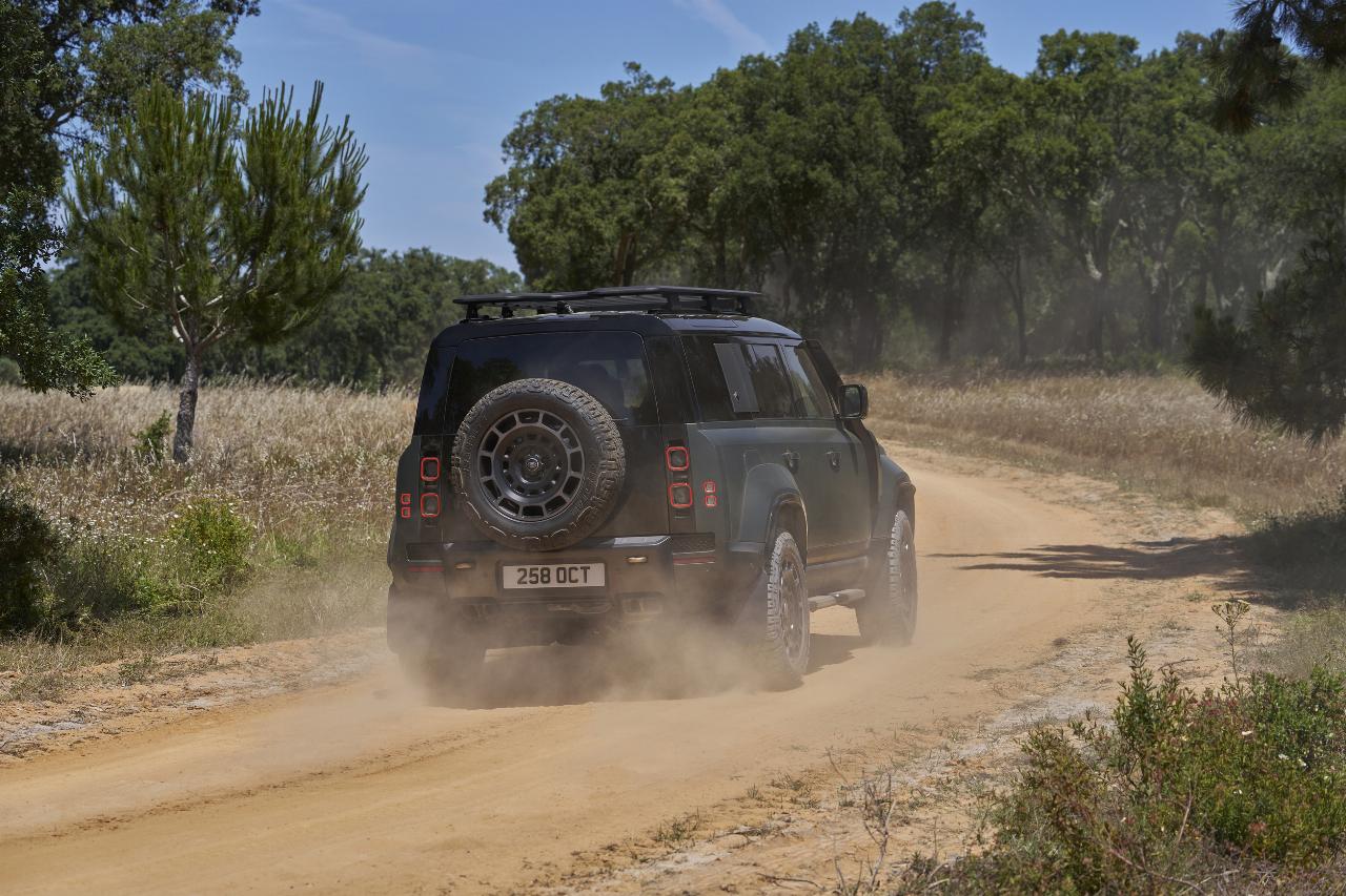 Der Defender Octa ist knapp drei Zentimeter höher und mit seinen ausgestellten Radkästen gut sieben Zentimeter breiter als die übrigen Serienversionen. Er verfügt über eine Wattiefe von einem Meter. Das Fahrzeug erkennt automatisch, auf welchem Untergrund er aktuell unterwegs ist und optimiert seine Fahrprogramme und Dynamikeinstellungen entsprechend.