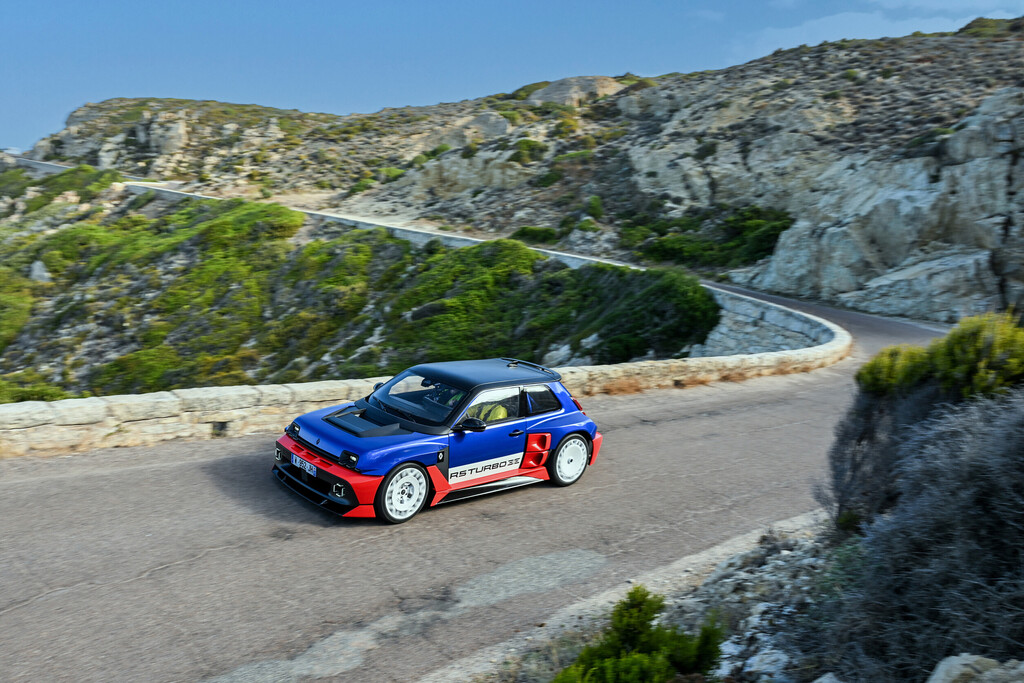 Renault bezeichnet den 4,08 Meter langen und 2,03 Meter breiten R 5 Turbo 3E als erstes elektrisches „Mini-Supercar”. Seine beiden Radnabenmotoren an der Hinterachse liefern zusammen 408 kW (555 PS) und mobilisieren ein Drehmoment von 4800 Newtonmetern. Beide Räder können separat gesteuert werden. Das Fahrzeug ruht auf einer neuen Aluminium-/Carbon-Plattform.