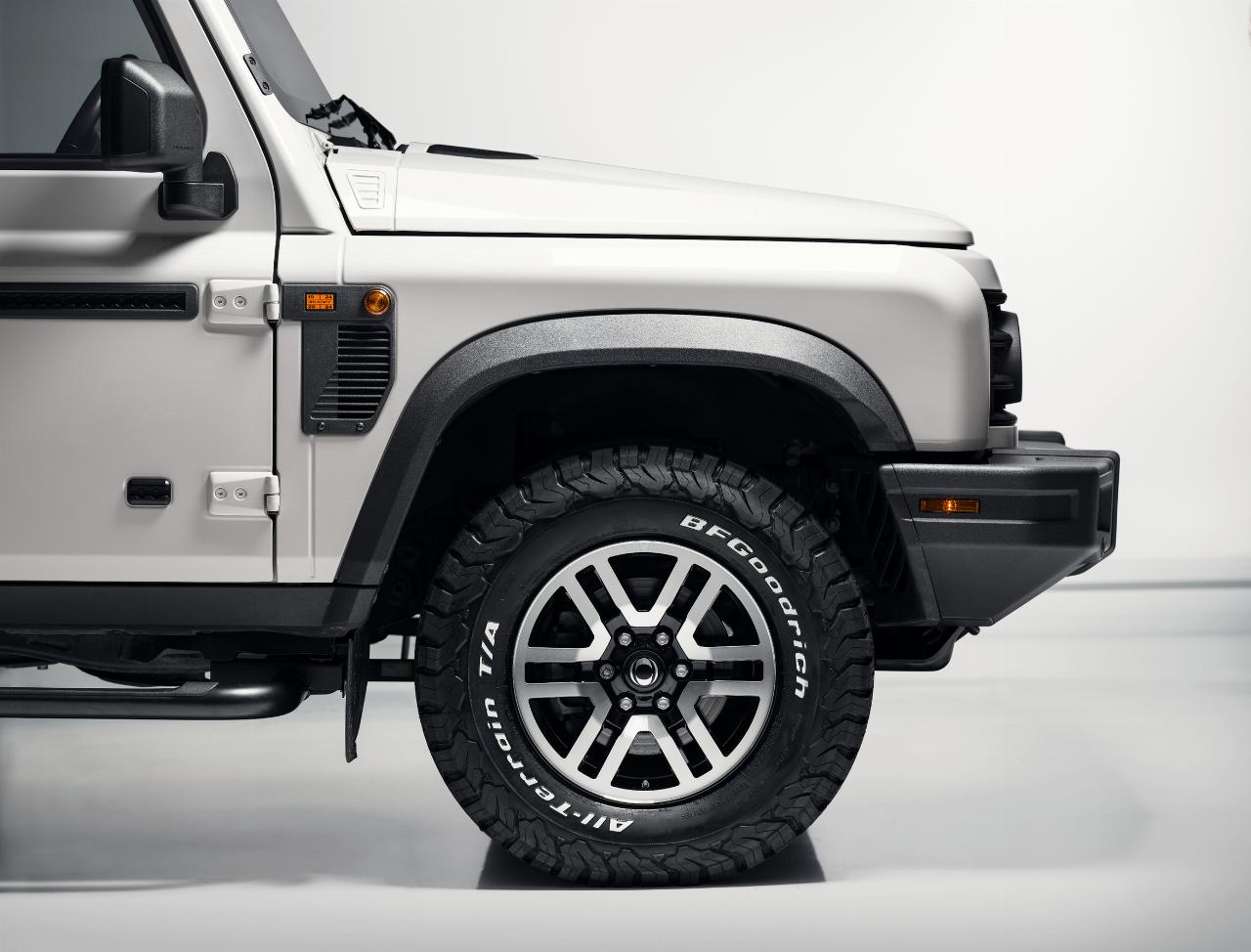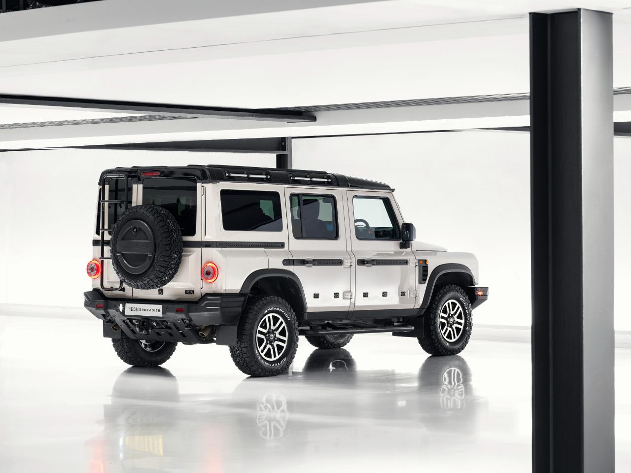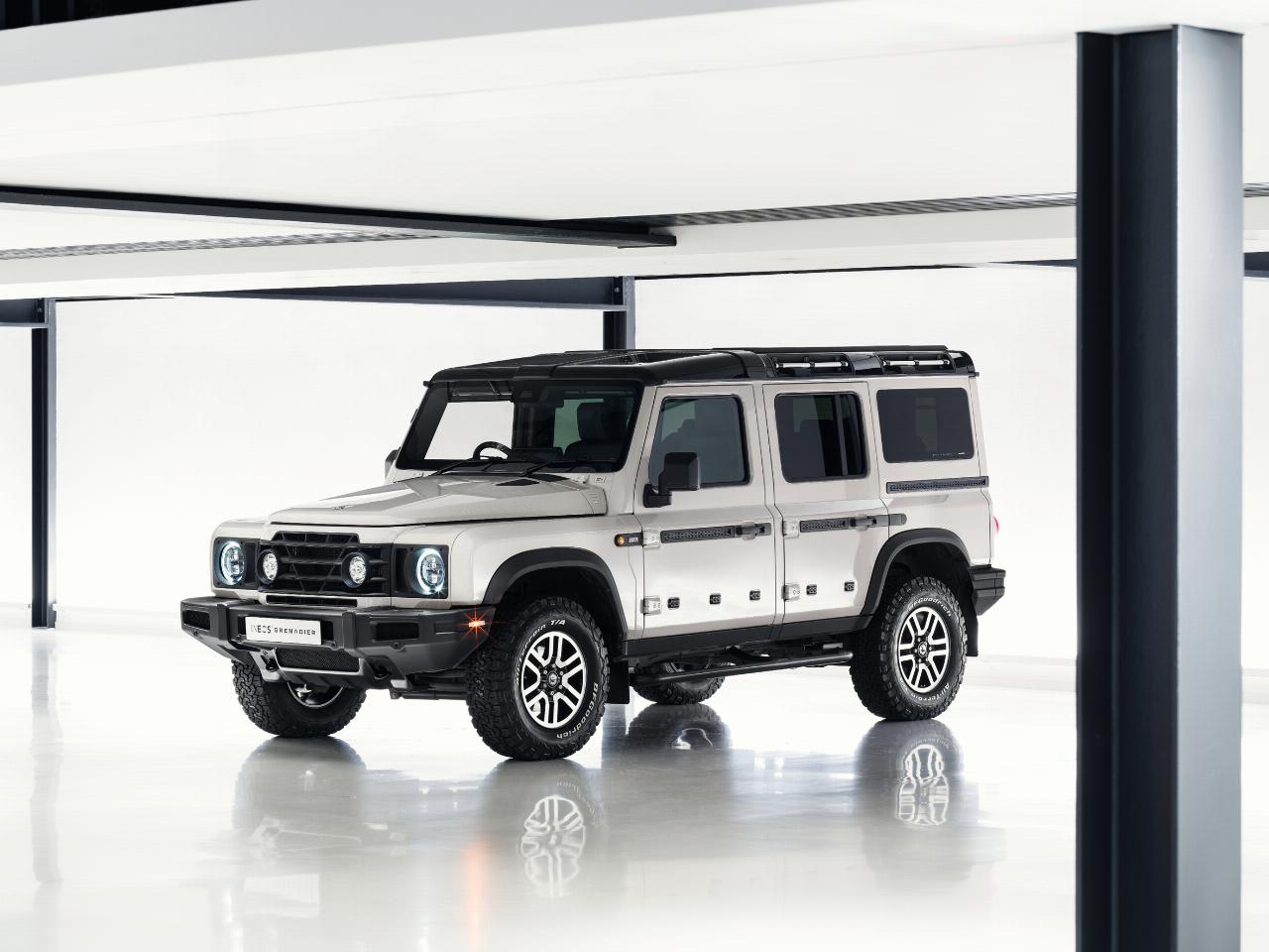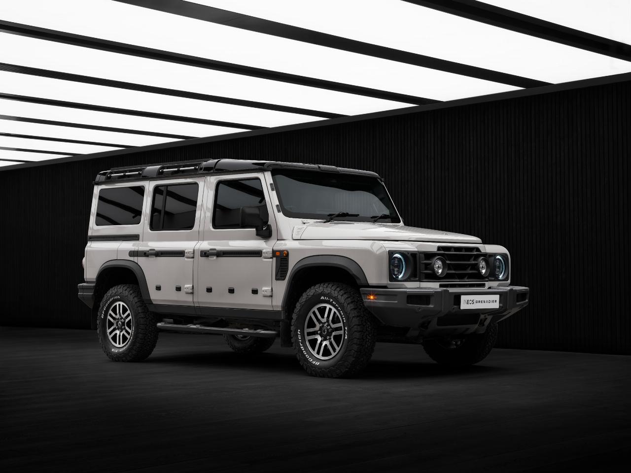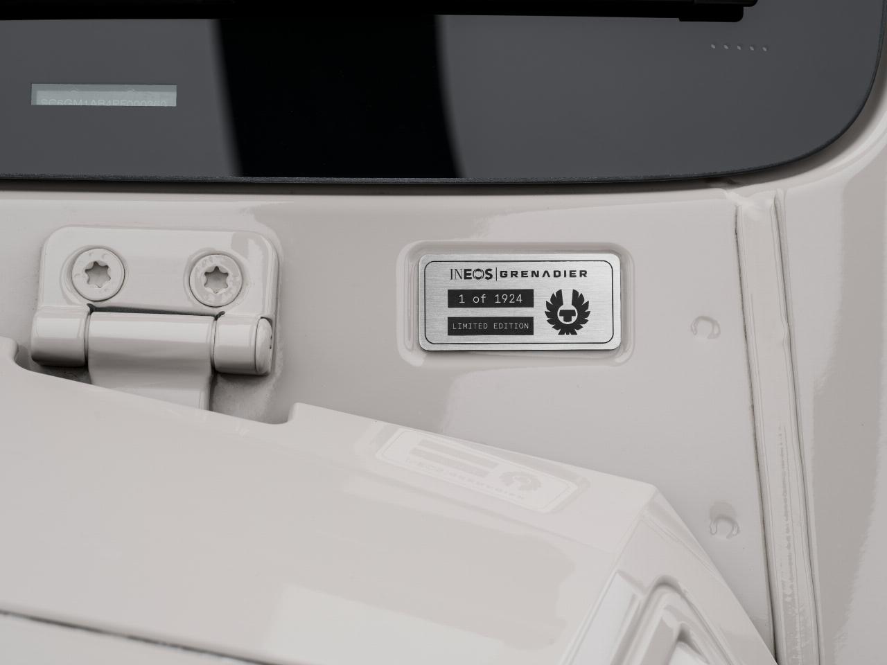 Der Ineos Grenadier 1924 zeichnet sich durch die kontrastierenden Farbgebung Magic Mushroom und Inky Black mit schwarz glänzenden, diamantgeschliffenen, zweifarbigen 17-Zoll-Leichtmetallrädern sowie einer entchromten schwarzen Kühlergrilleinfassung mit dunkelgrauem Unterbodenschutz an Front und Heck aus. Er basiert auf dem Flaggschiff-Paket „Fieldmaster“ und verfügt außerdem über eine dunkelgrüne Verkleidung im „Farmers Trim“-Design an Armaturenbrett, Mittelkonsole, Dachkonsole, Schalthebel und Türen sowie eine schwarze Verkleidung aus Sattelleder an Lenkrad, Handbremsgriff und Haltegriff an der Beifahrerseite. Der Dachhimmel ist dunkelgrau gehalten.