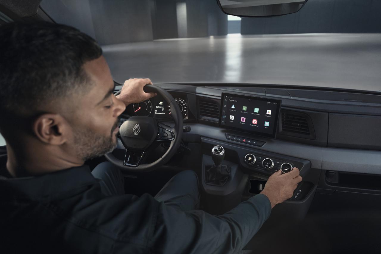 Das Cockpit des neuen Master orientiert sich laut Renault an Pkw-Standards und integriert auch Google-Funktionen. Der Innenraum bietet mit 135 Litern Stauvolumen so viel wie kein anderer Transporter im Segment. Mit an Bord sind außerdem bis zu 20 Assistenzsysteme. Der batterieelektrische Master verfügt zudem über Vehicle-2-X-Funktionen zum Anschluss externer Geräte.