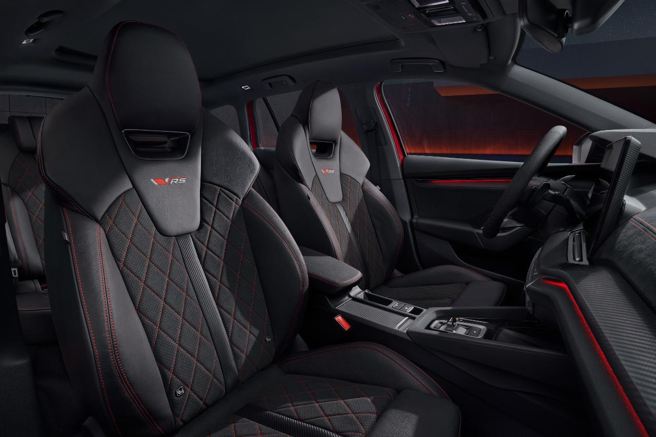 Bei Skoda kann ab sofort der neue Octavia RS (Rallye Sport) bestellt werden. Das Spitzenmodell der Bestseller-Baureihe leistet jetzt mit 265 PS (195 kW) 20 PS mehr als der Vorgänger und ist 250 km/h schnell. Der 2,0-Liter-Fronttriebler verfügt über ein elektromechanisches Differenzial und ist anderthalb Zentimeter tiefergelegt. Die Kraft wird über ein Sieben-Gang-Doppelkupplungsgetriebe mit neuem Wählhebel übertragen. Serienmäßig ausgestattet ist der RS innen mit Sportsitzen mit integrierten Kopfstützen und Dekorleisten in Dark-Carbon sowie mit roten Ziernähten. Mit an Bord sind das Digital Cockpit Plus, ein 13 Zoll großes Infotainmentdisplay inklusive Navigation und fünf USB-Anschlüsse sowie Chat-GPT und die Fahrhilfe Travel Assist.