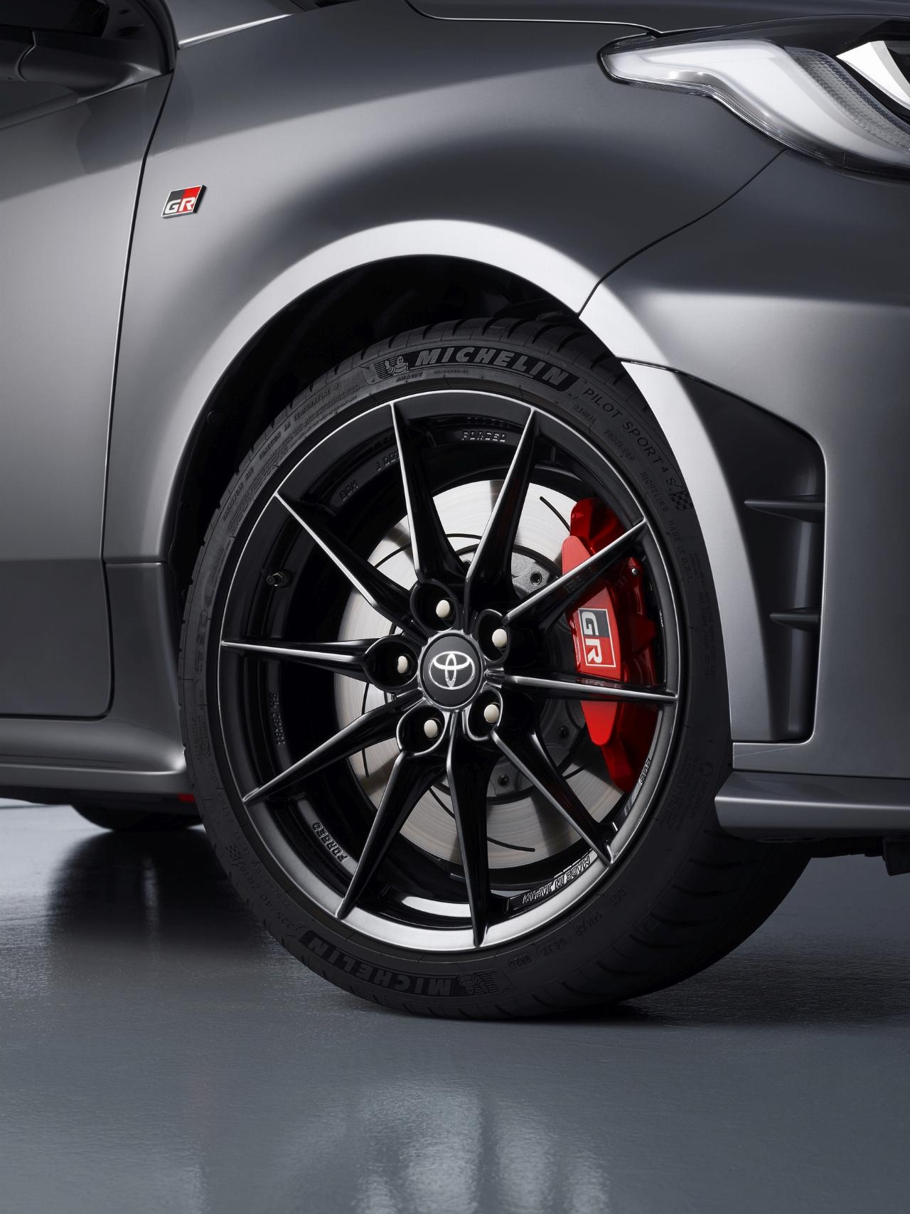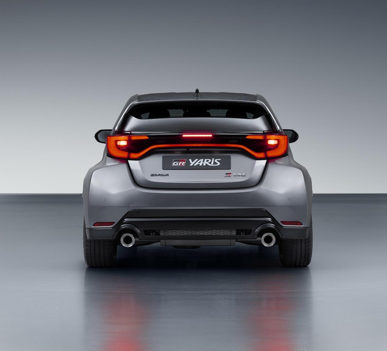 Auch äußerlich hat sich einiges am Toyota GR Yaris getan. Der untere Kühlergrill an der Fahrzeugfront verfügt über ein neues Stahlgitter, der seitliche Kühlergrill hat eine größere Öffnung, und der untere Stoßfänger besitzt eine neue, geteilte Konstruktion, die Reparaturen und Austausch einfacher und kostengünstiger macht. Am Heck kann die Luft, die unter dem Fahrzeugboden strömt, durch eine neue Öffnung am unteren Rand der unteren Verkleidung entweichen. Dies verringert den Luftwiderstand, verbessert die Wendigkeit und Stabilität des Fahrzeugs und leitet die Wärme der Abgasanlage ab. Die Nebel- und Rückfahrscheinwerfer wurden neu positioniert, um die Gefahr von Beschädigungen zu verringern. Die obere Bremsleuchte wurde vom Heckspoiler nach unten an die Heckklappe verlegt, so dass sich alle Rückleuchten in einer klaren Sichtlinie für nachfolgende Fahrer befinden. Die Verlegung des Bremslichtes erleichtert auch den Austausch oder die Anpassung des Spoilers.