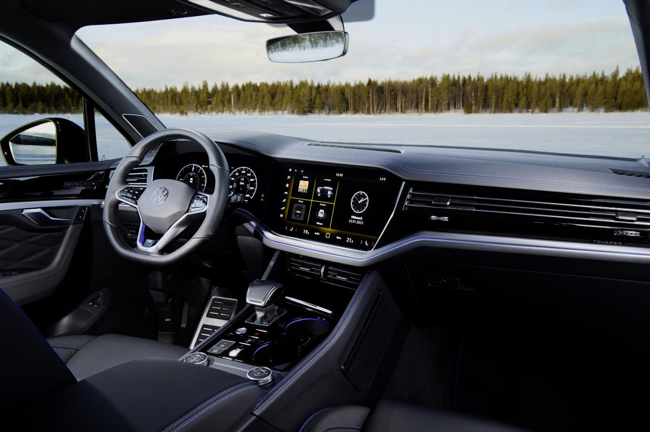 Der weiterentwickele Touareg ist mit dem „Innovision Cockpit“ ausgestattet. Die Bedienung erfolgt über den zentralen 15-Zoll-Touchscreen, das Multifunktionslenkrad und analoge Elemente wie die Lautstärkeregelung in der Mittelkonsole. Aufgrund von Kundenreaktionen sind die Armauflagen und die Mittelkonsolenverkleidung weicher ausgeführt.