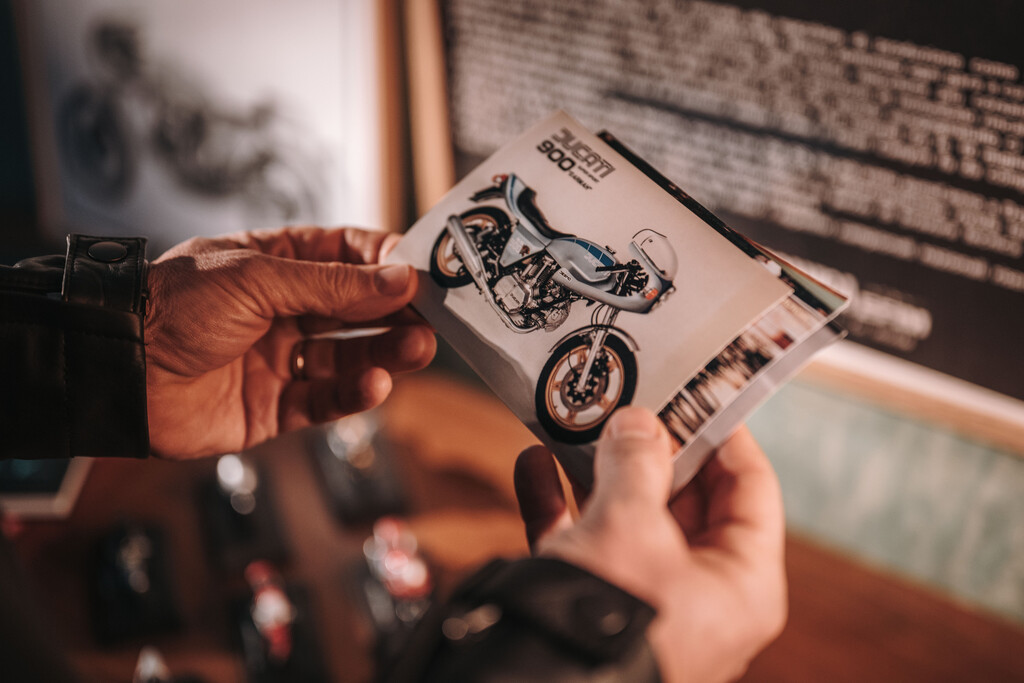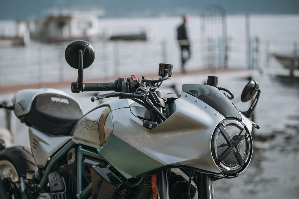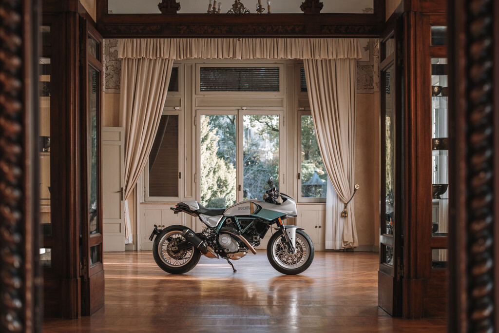 Die silber- und aquagrüne Lackierung im Stil der originalen 750 Super Sport ist das Ergebnis sorgfältiger Recherchen im Firmenarchiv. Der vertikale goldene Streifen auf dem Tank greift den unbehandelten Streifen der 750 Imola Desmo auf, der es dem Team ermöglichte, den Kraftstoffstand zu kontrollieren, ohne das Motorrad zusätzliche Instrumente nötig waren. Lenkerstummel mit Lenkerendenspiegeln, die kurze, schmal zulaufende Verkleidung und das Heck unterstreichen den Café-Racer-Stil des exklusiven Sonder- und Sammlermodells. Zahlreiche Komponenten sind aus gefrästem Aluminium gefertigt – darunter Brems- und Kupplungshebel, Ausgleichsbehälter, Fußrasten sowie der serienmäßige Rizoma-Tankdeckel. Wie alle Sondermodelle von Ducati trägt auch die Formula 73 Modellbezeichnung und Seriennummer auf der Gabelbrücke. Jedes Exemplar wird mit einem Echtheitszertifikat sowie einer Sammlung historischer Bilder und Skizzen in einer speziellen Box geliefert. Zudem hält Ducati einen gemeinsam mit Arai entwickelten Helm sowie eine Sportjacke bereit, die die Lackierung der Formula 73 aufgreifen.