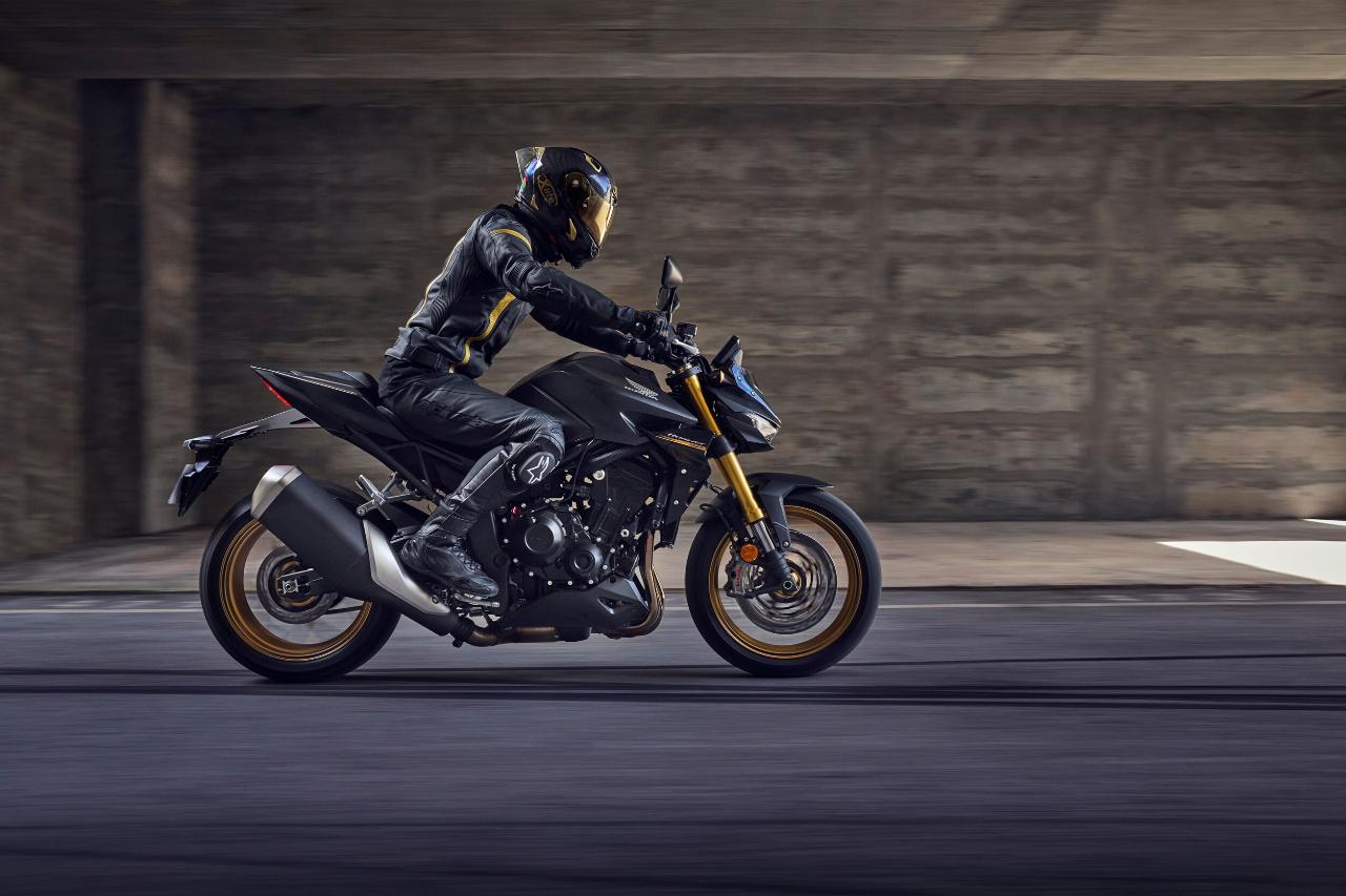 Die CB 1000 Hornet bringt unter anderem drei feste und zwei individuell einstellbare Fahrprogramme, eine Wheelie Control und eine dreistufig einstellbare Motorbremse sowie ein konnektivitäsfähiges Fünf-Zoll-TFT-Farbdisplay mit. Beim Fahrwerk des Naked Bikes handelt es sich um eine Neukonstruktion. Der Tank fasst 17 Liter, das fahrfertige Gewicht beträgt 211 Kilogramm. Als Highend-Variante wird es auch eine SP mit Öhlins-Federbein geben. Sie bietet noch einmal fünf PS und drei Newtonmeter mehr.
