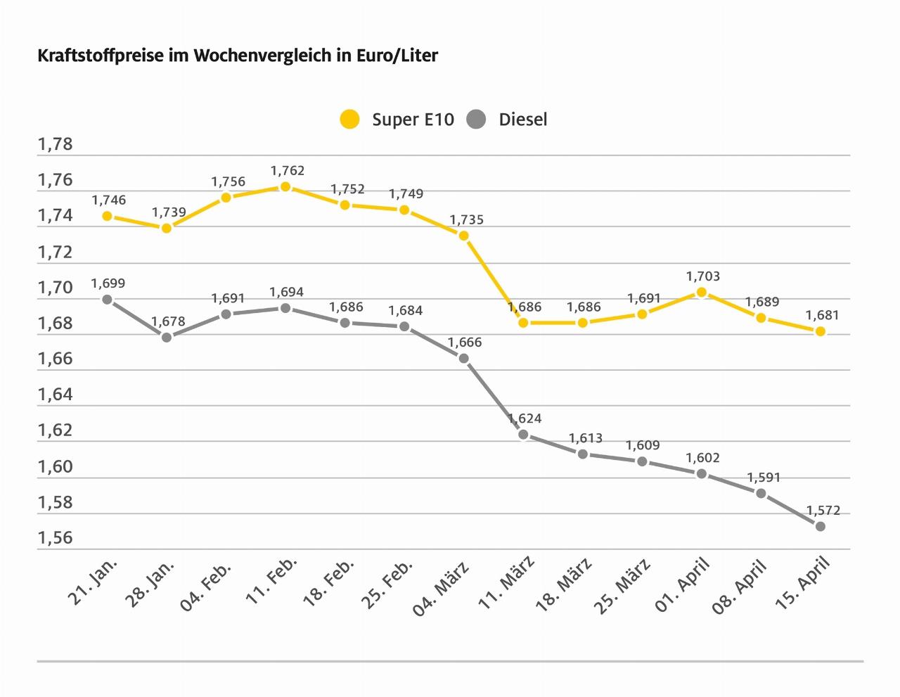 Die aktuelle Entwicklung der Kraftstoffpreise geht damit laut ADAC zwar in die richtige Richtung, angesichts des deutlichen Ölpreisrückgangs vor knapp zwei Wochen ist das Preisniveau von Benzin und Diesel nach Einschätzung des Automobilclubs aber immer noch zu hoch. So war der Rohöl-Preis (Brent) vor zwei Wochen von rund 75 US-Dollar auf unter 63 Dollar abgesackt. Diesem Rückgang waren die Kraftstoffpreise jedoch nicht umfänglich gefolgt. Auch wenn der Ölpreis seit vergangener Woche wieder um zwei auf etwa 65 US-Dollar gestiegen ist, erscheint das Preisniveau der aktuellen Spritpreise trotz des jetzigen Rückgangs laut ADAC immer noch nicht ganz angemessen. Ein weiteres Argument für sinkende Kraftstoffpreise ist der Wechselkurs des Euro zum US-Dollar: Die europäische Währung notiert deutlich stärker im Vergleich zur Vorwoche und kletterte von unter 1,10 auf nun fast 1,13 US-Dollar je Euro. Dies ist der höchste Stand seit Anfang 2022 und sorgt dafür, dass der Kauf von Rohöl, das üblicherweise in US-Dollar bezahlt wird, sich verbilligt und damit isoliert betrachtet auch zu günstigeren Preisen an den Zapfsäulen führen sollte. (aum)