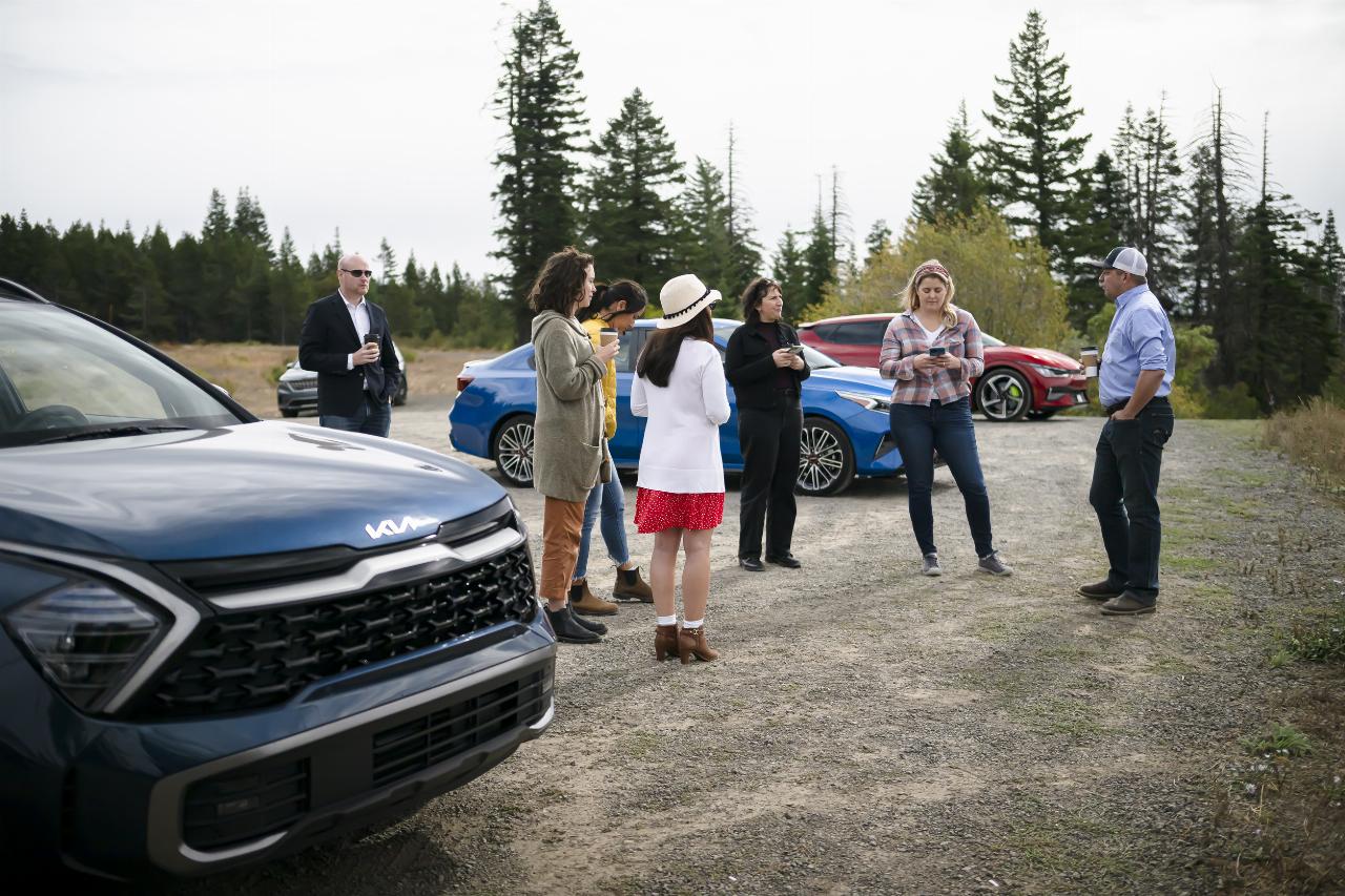 Doch wir sind mit Kia nach Walla Walla gekommen, um eine Phalanx bemerkenswerter Automobile zu testen: Die vollelektrische Palette vom Niro Electric über EV6 und EV6 GT bis hin zum EV9. Daneben gibt es den Niro und Sportage als Plug-In-Hybrid – und für Puristen hat Kia den 204 PS starken Forte GT mitgebracht, einen Verwandten des europäischen Ceed GT und mit klassischer Handschaltung, eine kompakte Sportlimousine reiner Bauart.
