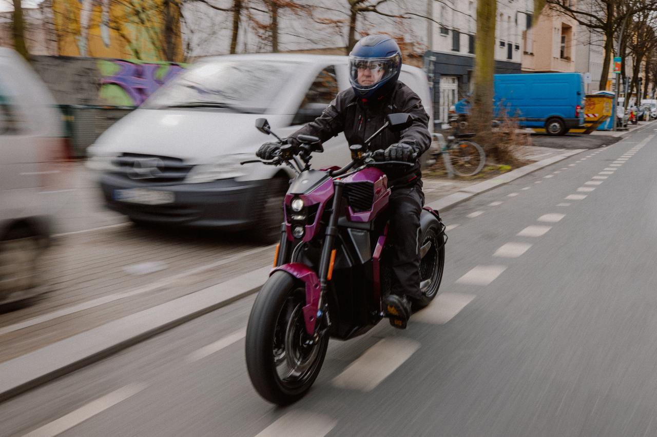 Bei einer kurzen Vorstellung in Berlin diese Woche stand nur ein Musterexemplar der ersten Entwicklungsgeneration zur Verfügung, das weder ein funktionsfähiges Display noch eine andere Fahrstufe als Zen erlaubte. Und es blieb bei einer kurzen Ausfahrt im Stadtverkehr. Der erste Eindruck: Der Felgenantrieb arbeitet dank fehlender weiterer Komponenten absolut unauffällig. Der Fahrer spürt mechanisch davon gar nichts. Die sanfte und gut dosierbare Leistungsannahme überfordert zumindest in der Komfortstufe auch unerfahrenere Fahrer nicht. Von Hause aus rollt die Verge auf Pirelli Rosso III.