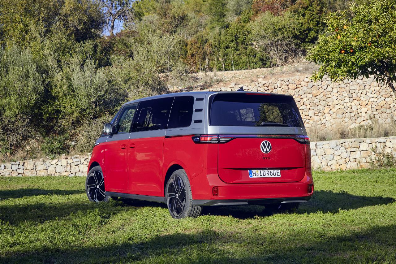 Im zweiten Halbjahr soll der sportliche Stromer unter den VW-Bussen in den Handel kommen. Eine Verwechslungsgefahr mit den zivileren Varianten ist ausgeschlossen: Die Stoßfänger sind deutlich wuchtiger, schwarze Luftleitelemente sind weitere Unterscheidungsmerkmale. Serienmäßig sind 19-Zoll-Räder, optional aber auch 21-Zöller zu haben.