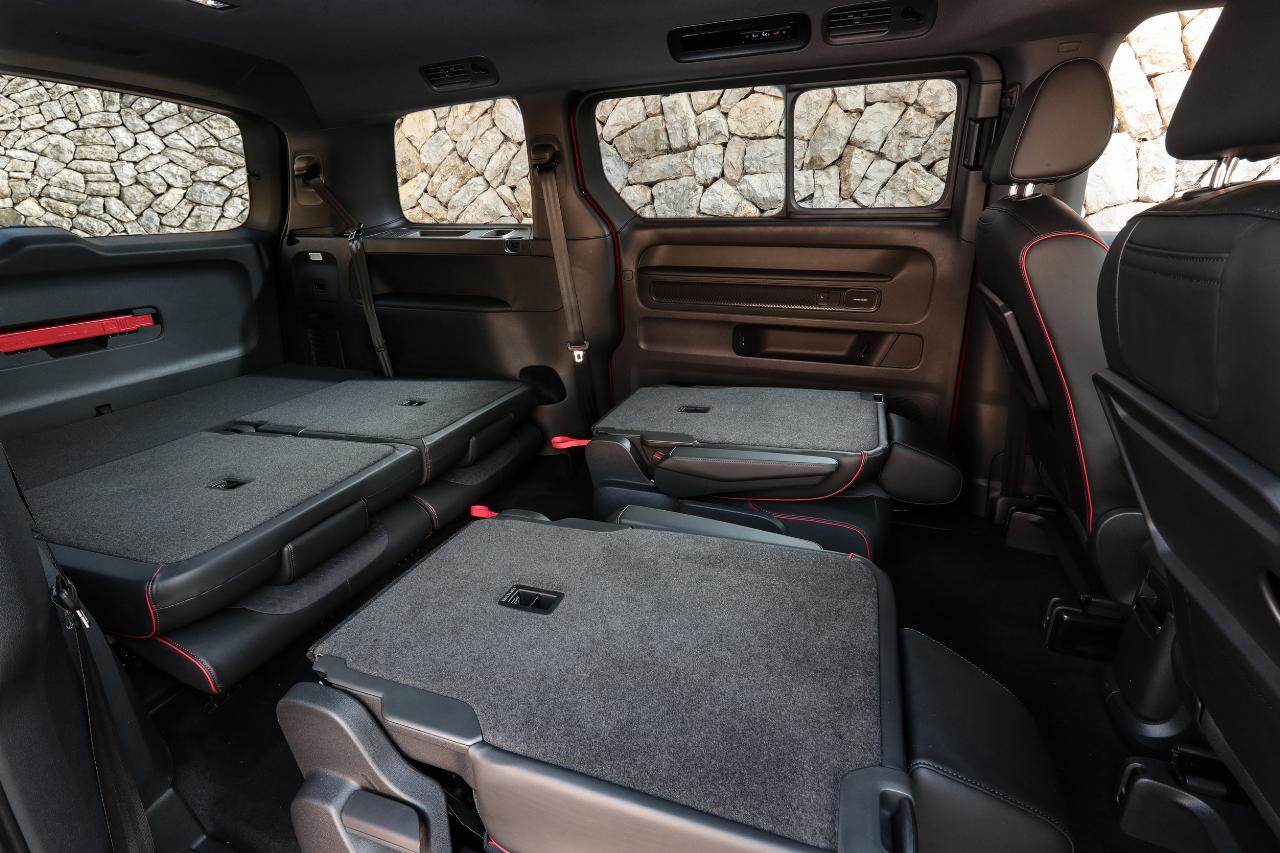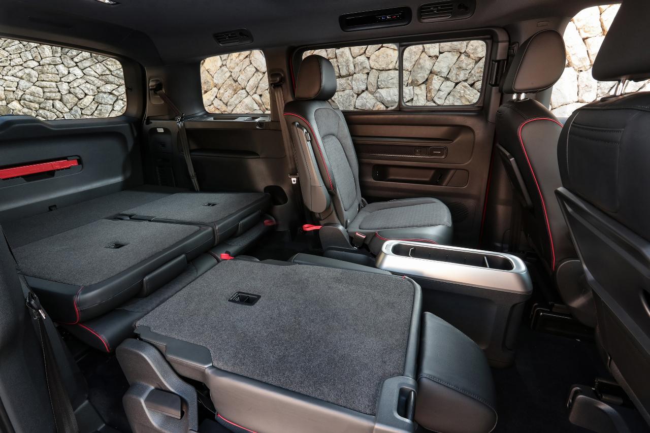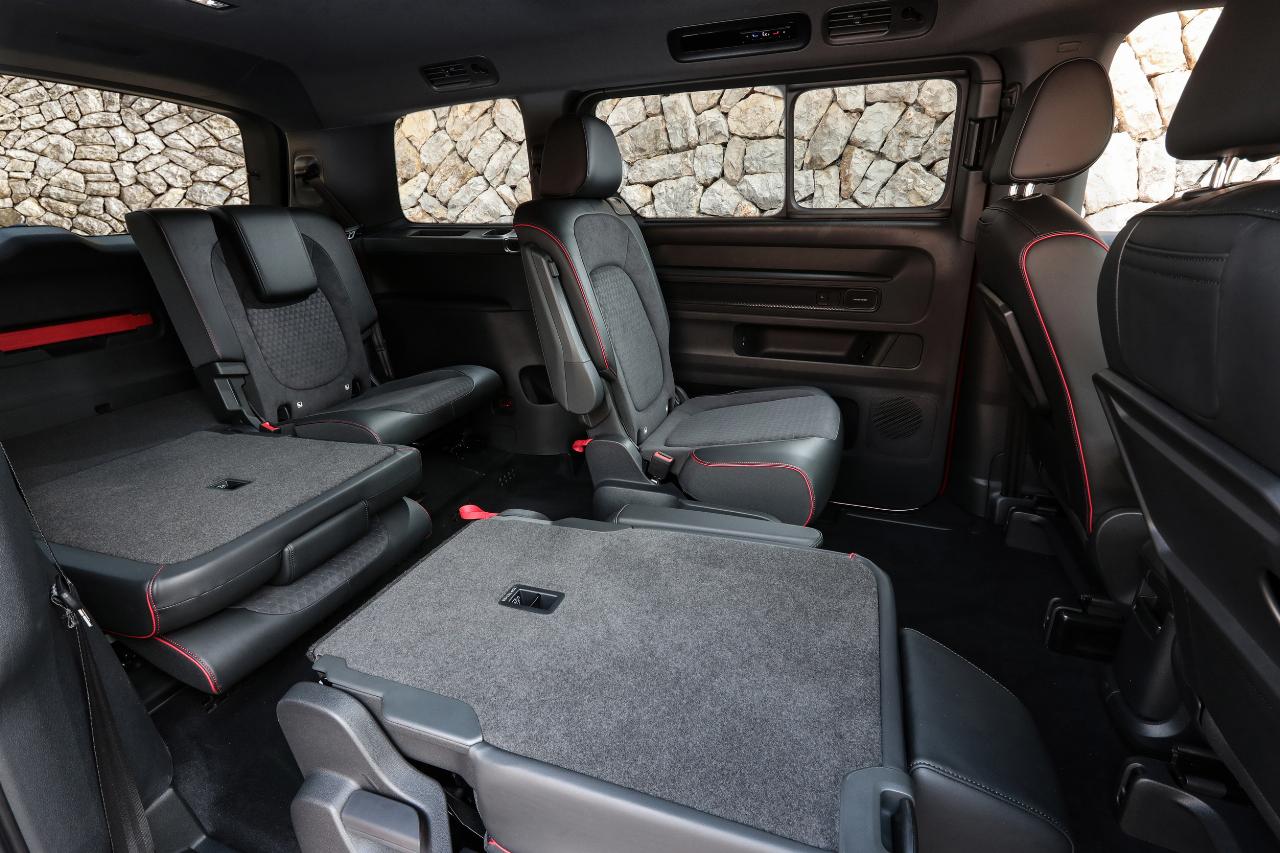 Innen signalisieren ein schwarzer Dachhimmel und Komfortsitze in Rautenmuster mit roten Kontrastnähten, dass dies kein normaler ID Buzz ist. Wie die anderen Elektrobusse aus Hannover kann der GTX mit fünf, sechs oder sieben Sitzplätzen bestellt werden. Als Sechssitzer hat er drei Reihen zu zwei Einzelsitzen. Ein Reminiszenz an den berühmten, üppig verglasten Samba-Bus ist das Panorama-Glasdach, das für den ID Buzz mit langem Radstand erhältlich ist. Es lässt sich gegen Sonne und neuartige Blicke auf Knopfdruck verdunkeln.