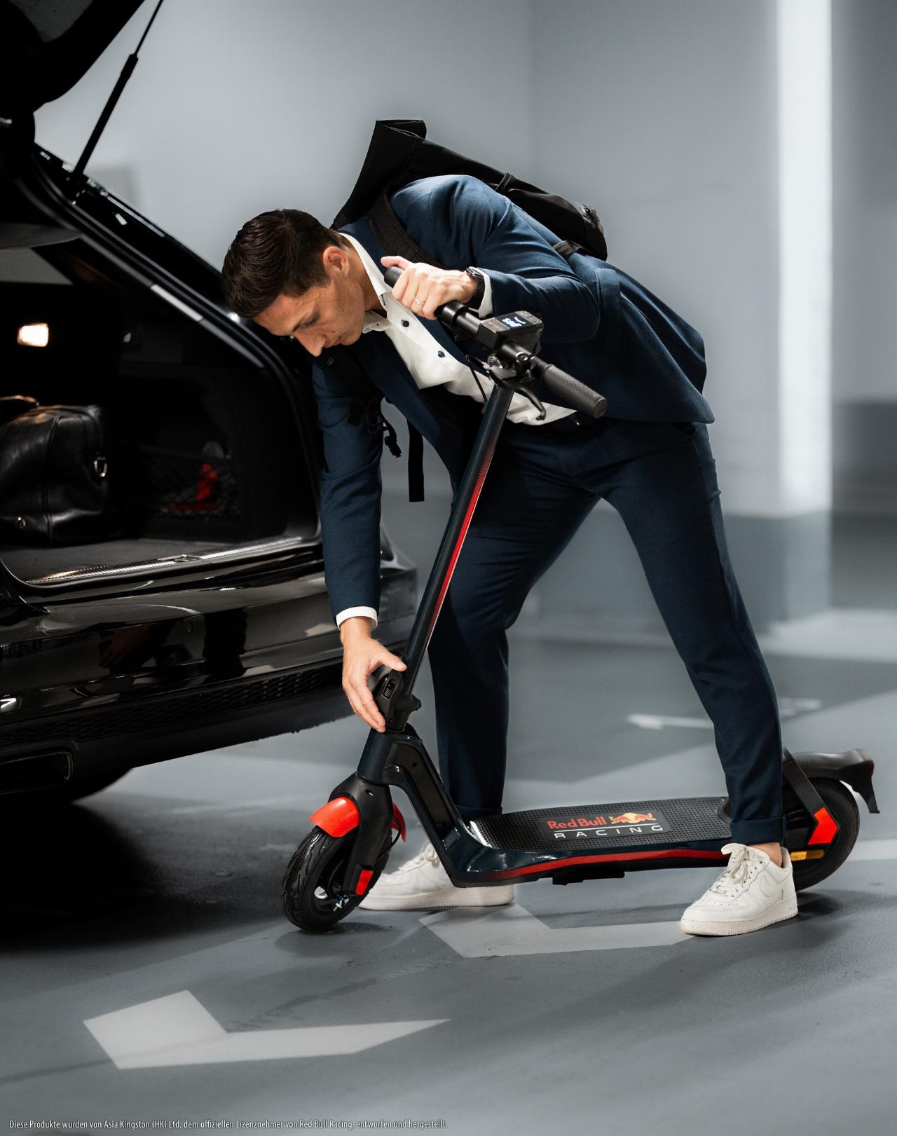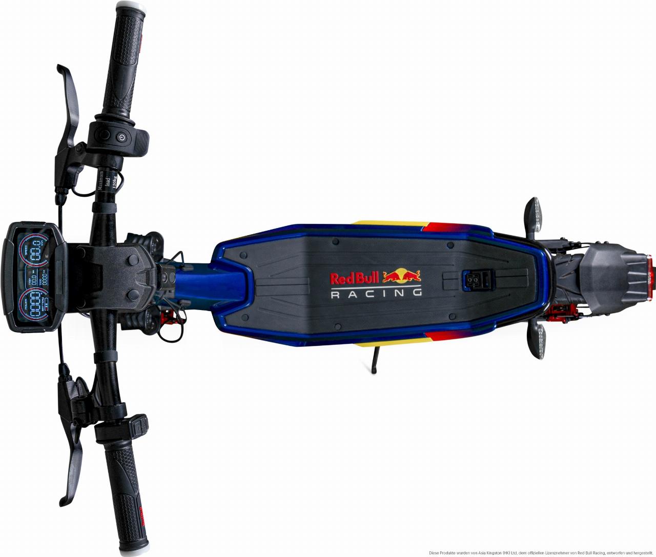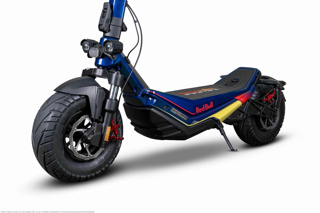 Topmodell ist der RS 1200 AT (All Terrain) mit 500 Watt Dauer- und 1000 Watt Spitzenleistung sowie Scheibenbremsen. Mit seinen dicken und 13 Zoll großen Luftreifen, Federgabel und hinteren Stoßdämpfern ist er geländetauglich. Zugeschaltet werden können drei Unterstützungsstufen für Steigungen von bis zu 33 Prozent. Die 960 Wh große Batterie des klappbaren E-Scooters steht für Reichweiten von bis zu 60 Kilometern. Der Red Bull Racing RS 1200 AT hat allerdings keine Straßenzulassung.