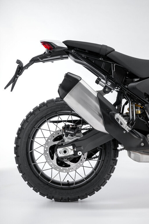 Der segmentweit einzigartige und eigens für die Ducati entwickelte Monocoque-Rahmen nutzt den Motor als tragendes Element und fungiert zugleich als Airbox. Das reduziert das Gewicht bei gleichzeitig höherer Rahmensteifigkeit. Die neue Position der Airbox erleichtert zudem den Luftfilterwechsel. Die neue Desert X verfügt über eine Hinterradaufhängung mit progressiver Umlenkung und eine Gabel mit getrennten hydraulischen Einstellmöglichkeiten an beiden Holmen.