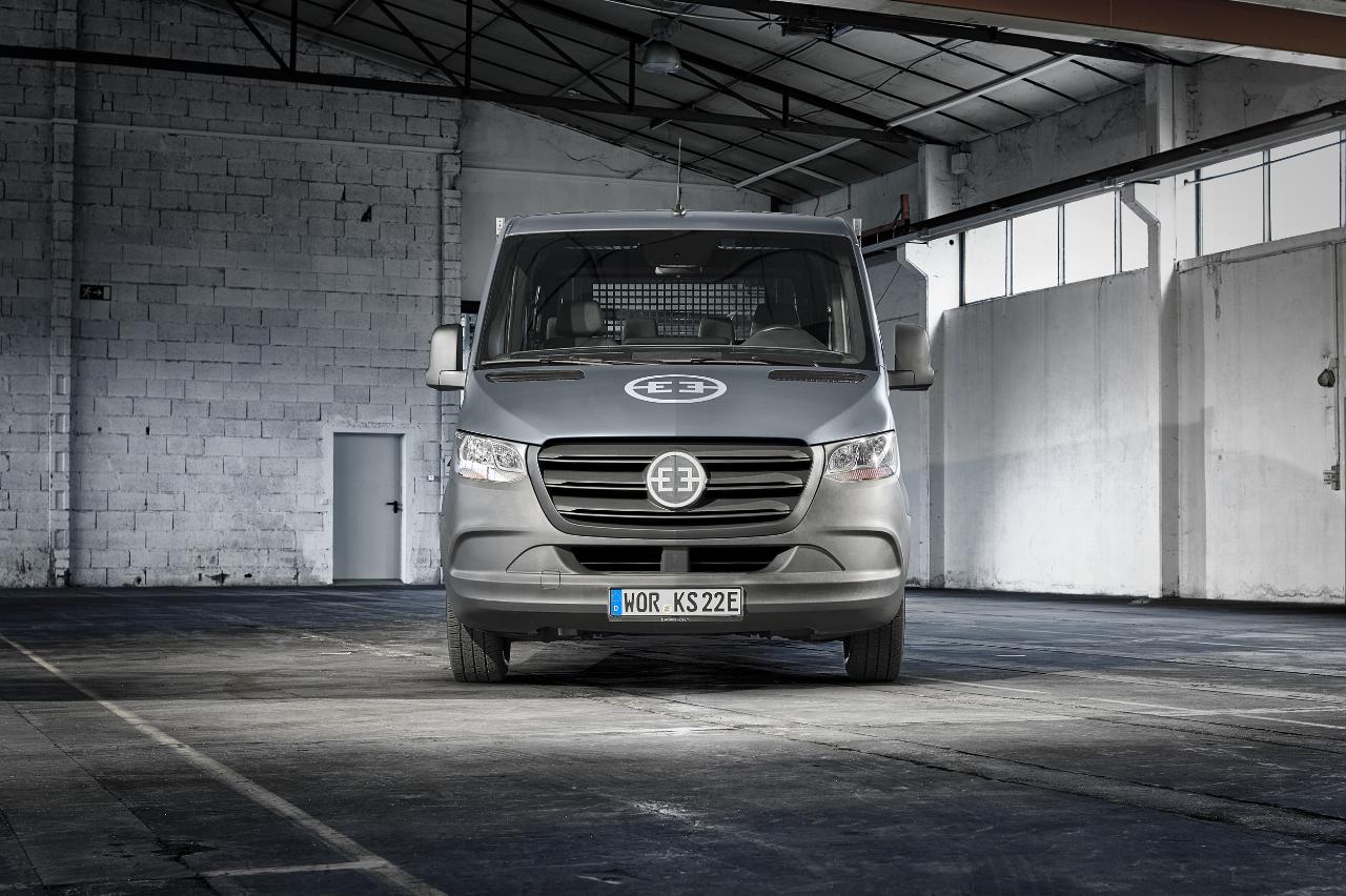 Mit 180 kW (245 PS) und einer Reichweite von 400 Kilometern nimmt E-Works Mobility für sich in Anspruch, den leistungsfähigsten Elektrotransporter in der 3,5-Tonnen-Klasse anzubieten. Das Unternehmen aus Ismaning bei München, das auch Bestandsfahrzeuge umrüstet, nutzt als Ausgangsbasis für sein Modell Heero den Mercedes-Benz Sprinter. Der Transporter ist schnellladefähig und anhängertauglich. Er kann auf Wunsch auch auf 4,25 Tonnen aufgelastet werden und trotzdem weiterhin mit dem Pkw-Führerschein gefahren werden. Die Preise beginnen bei 76.980 Euro. (aum)