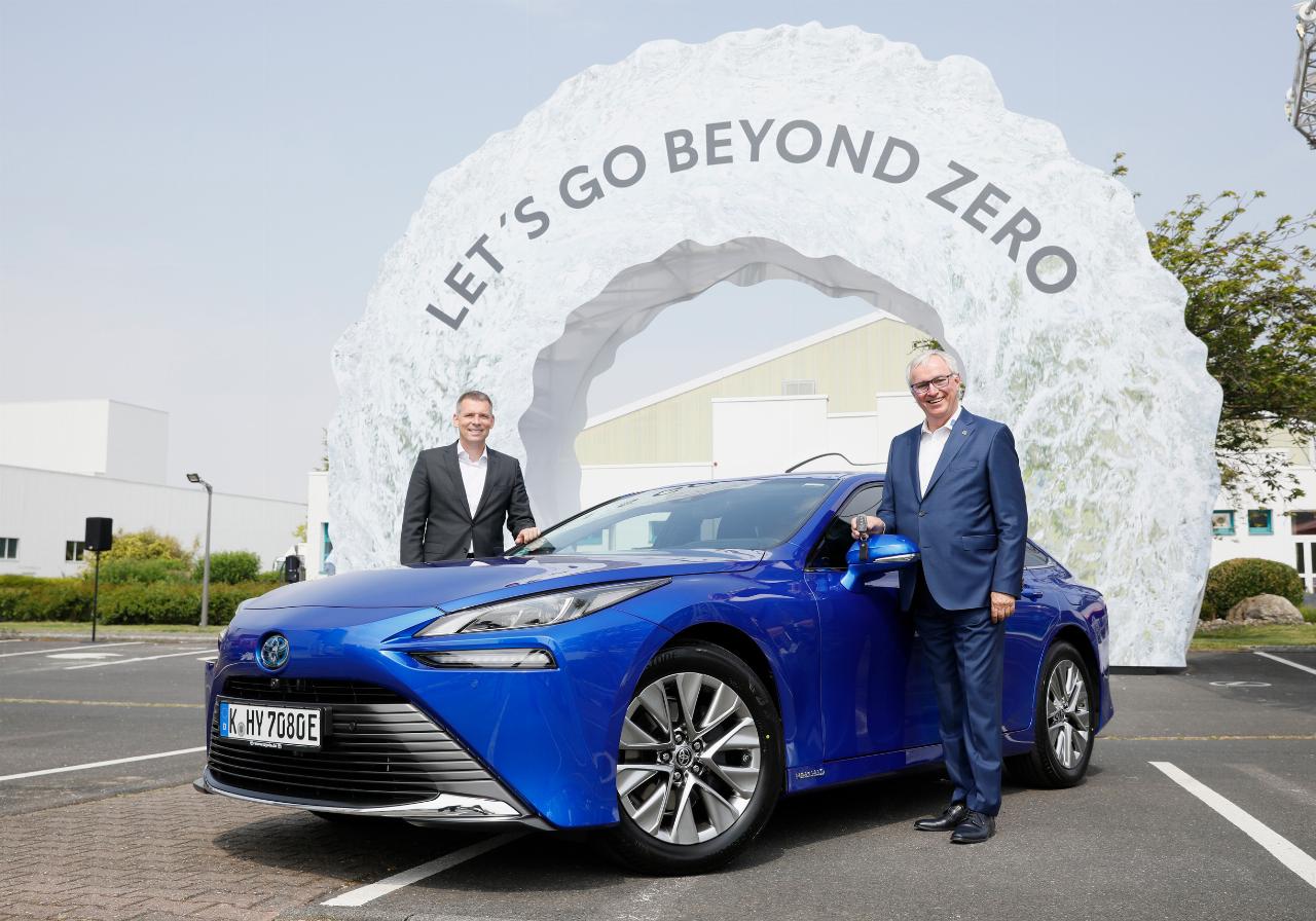 Hy Cologne ist ein Zusammenschluss von über 50 Akteuren aus Politik, Industrie und Forschung zur Förderung der Wasserstofftechnik im Rheinland. Im Toyota Mirai sorgt der in drei Tanks mitgeführte Wasserstoff dafür, dass eine kompakte Brennstoffzelle Strom für den 130 kW (182 PS) starken Elektromotor produziert. Das sorgt für eine Reichweite von bis zu über 650 Kilometern. (aum)