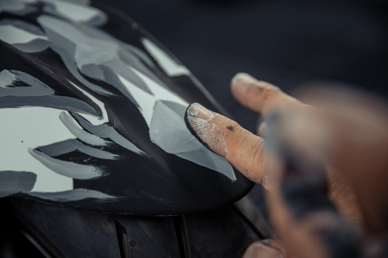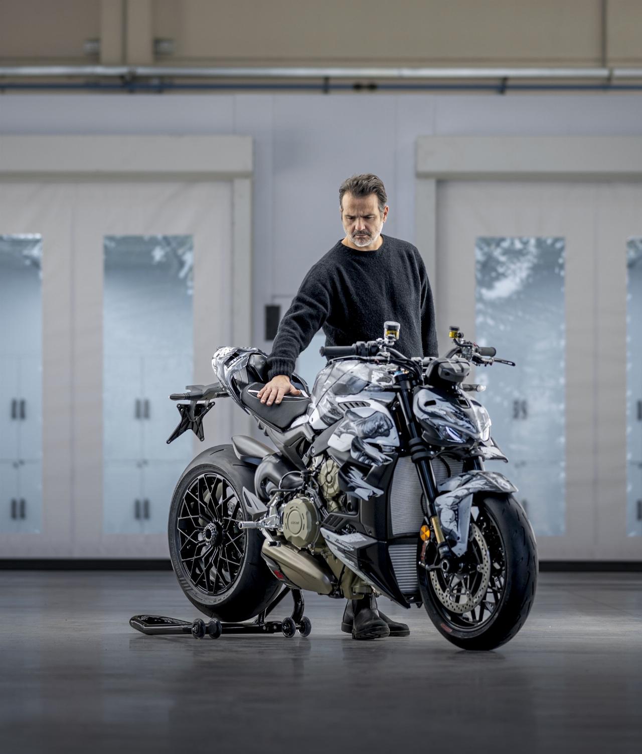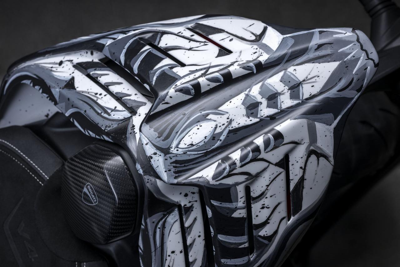 Paolo Troilo ist für seine hyperrealistische Fingermalerei bekannt, mit der er 2021 auf der Karosserie eines Lamborghini Huracán Evo das Gemälde „Minotauro“ schuf. Das Nachfolgewerk „Centauro“ zeigt auf der Ducati die figurative Darstellung von den Armen eines Mannes während der Beschleunigung. Die Malerei umschließt die beiden Seiten des Tanks. Vervollständigt wird das Kunstwerk mit abstrakten geometrischen Formen auf den übrigen Teilen des Motorrads.
