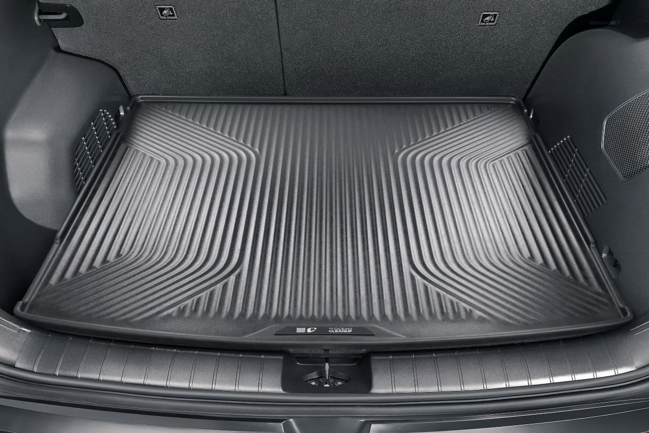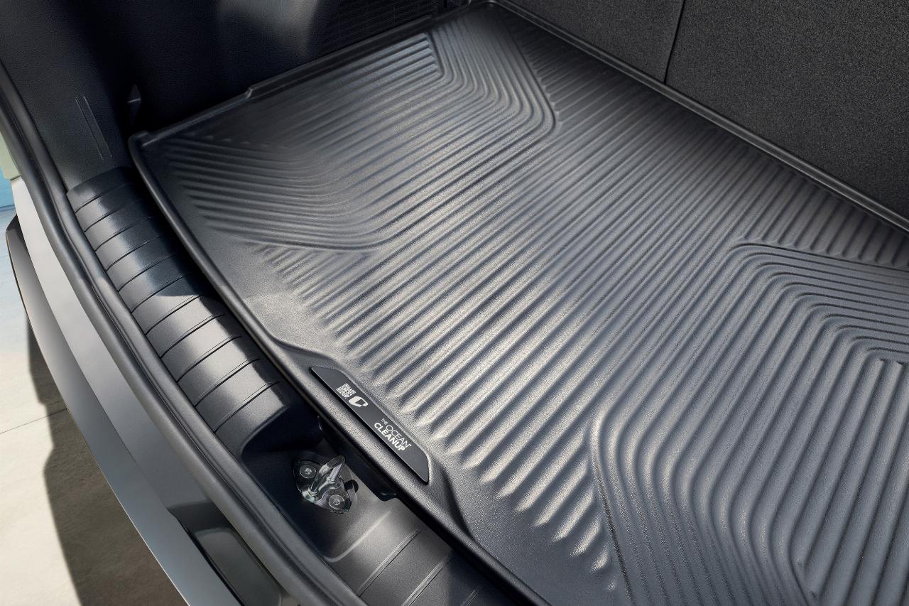 Kia unterstützt die Non-Profit-Organisation, die Technologien zur Befreiung der Weltmeere von Plastikmüll entwickelt und verbreitet, seit zwei Jahren. Die Kofferraumschale zeigt ein Muster geometrischer Wellen. Es ist eine Anspielung auf die Meere und das Treiben des Plastikmülls hin zu einem Sammelgebiet – und ein Hinweis auf das Verfahren, mit dem The Ocean Cleanup Kunststoff aus dem Meer zurückgewinnt. Die Schale besteht zu 40 Prozent aus
