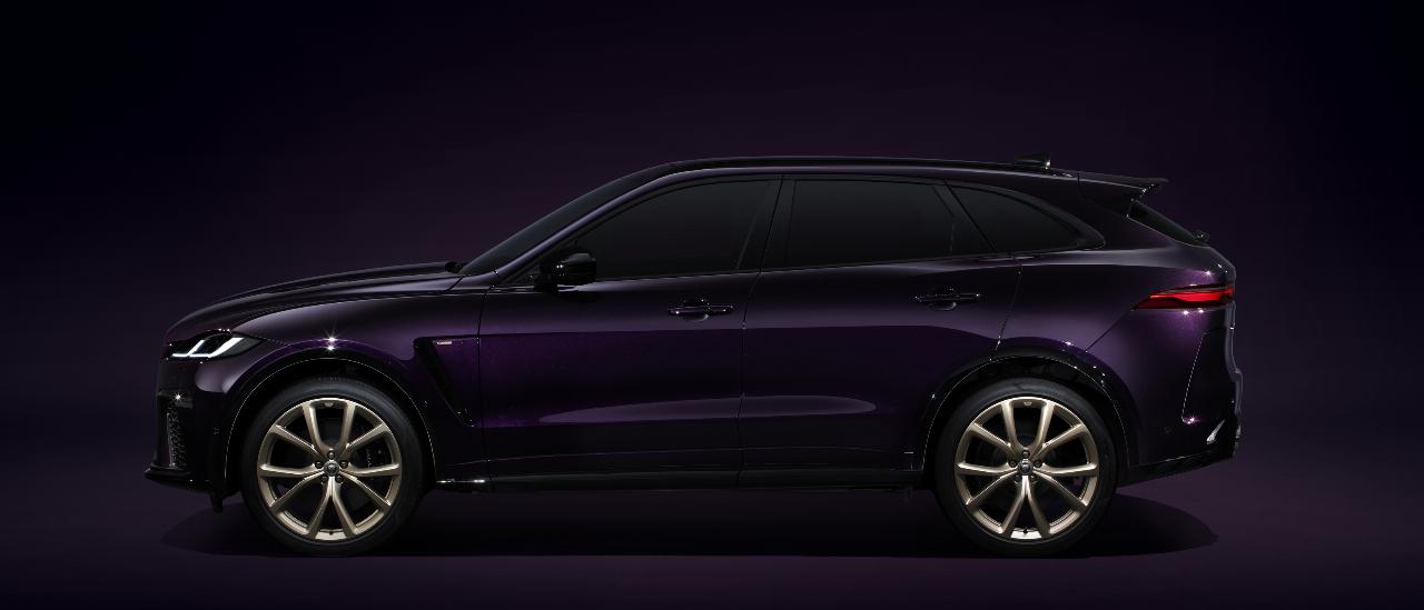 Die Außenfarbe Midnight Amethyst wurde speziell für das Editionsmodell entwickelt und wird auch ihm allein vorbehalten bleiben. Sie soll an die Lackierung des damaligen Rennwagens erinnern. Weitere exklusive Details sind unter ein Jaguar-„Leaper“ (die springende Raubkatze) in Sunset Gold Satin samt gleichfarbigem Marken-Schriftzug auf der Heckklappe sowie Luftauslässe in den vorderen Kotflügeln mit „Edition 1988“-Emblem. Zusätzlich zum serienmäßigen Black Pack des F-Pace SVR sind auch die Außenspiegelkappen, die Bremssättel, die Nabendeckel der Felgen, das „R“ auf dem vorderen SVR-Emblem und am Lenkrad in glänzendem Schwarz ausgeführt.