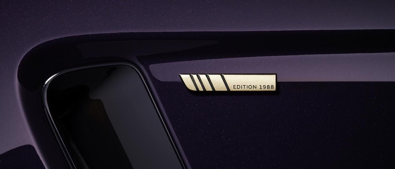 Dazu kommen im Interieur offenporige Dekors in Karbon, eine Semi-Anilin-Lederpolsterung in Ebony und exklusive Details in Sunset Gold Satin an Armaturenbrett, Lenkrad und Schaltwippen sowie den beheizten und gekühlten Performance-Vordersitzen. Beleuchtete Einstiegsleisten mit „Edition 1988“-Branding und eine beim Öffnen der Türen sichtbare „One of 394“-Plakette am seitlichen Ende des Armaturenträgers sind weitere Merkmale.